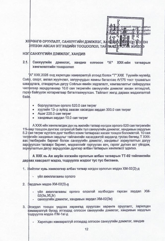 -Монголын татварын алба татварын хууль тогтоомж хэрэгжүүлэх зөвлөмж ... 2025-10-01 98ДОЛОО ХОНОГИЙН ҮЙЛ АЖИЛЛАГАА