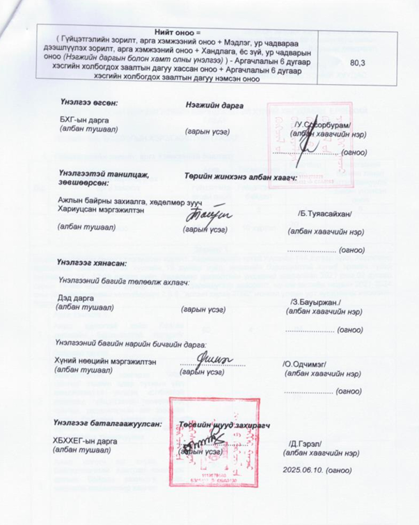 Ажлын гүйцэтгэлийн тайлан үнэлгээний хуудас-2025он /Бодлого, хэрэгжилтийн газар/