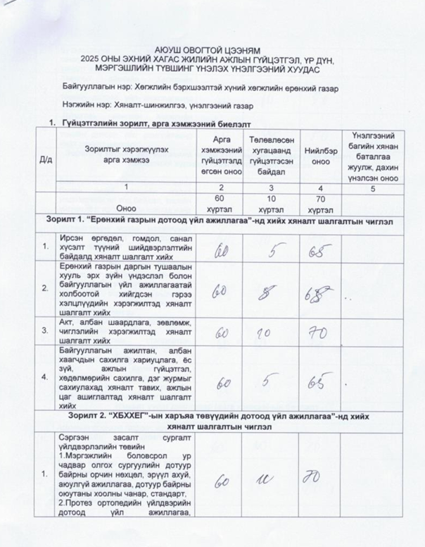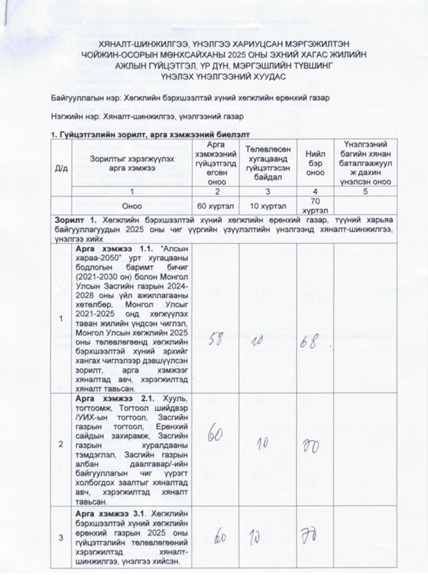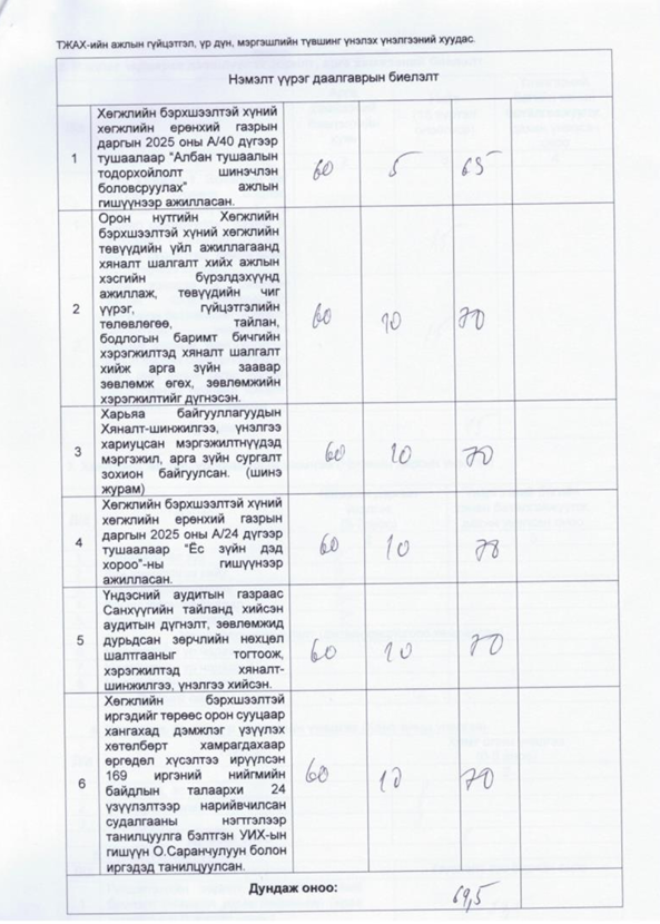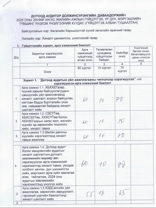 Ажлын гүйцэтгэлийн тайлан үнэлгээний хуудас-2025он /Хөгжил нийгмийн оролцооны газар/