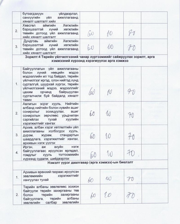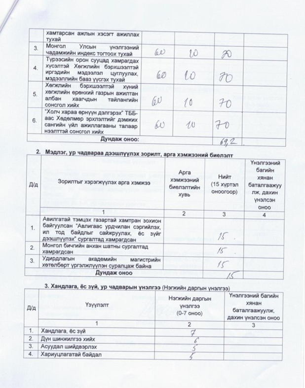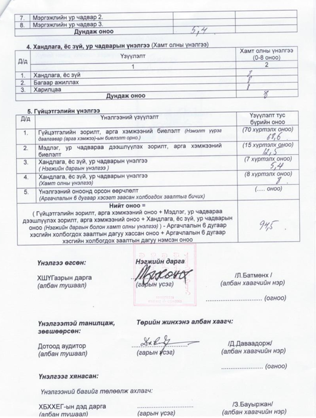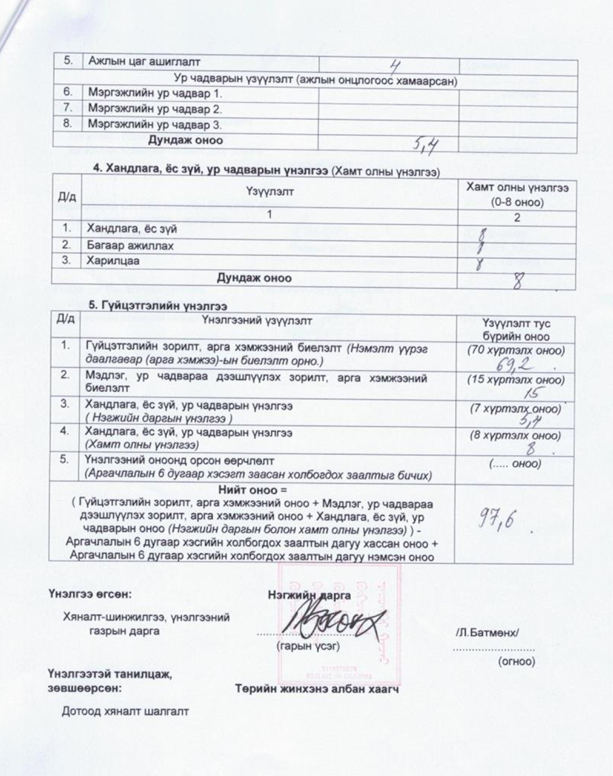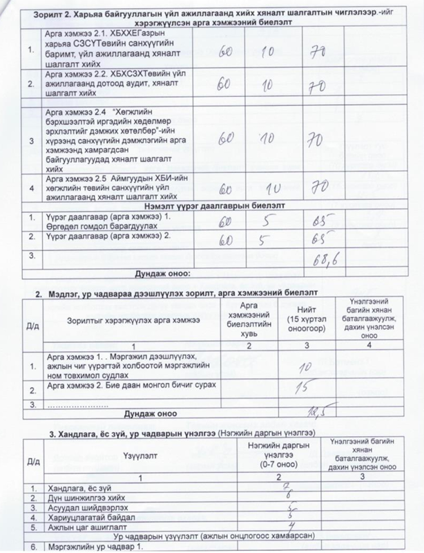 Төрийн жинхэнэ албан хаагчийн ажлын гүйцэтгэл, үр дүн, мэргэшлийн түвшинг үнэлэх