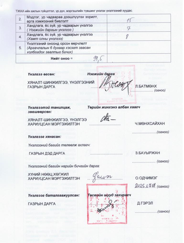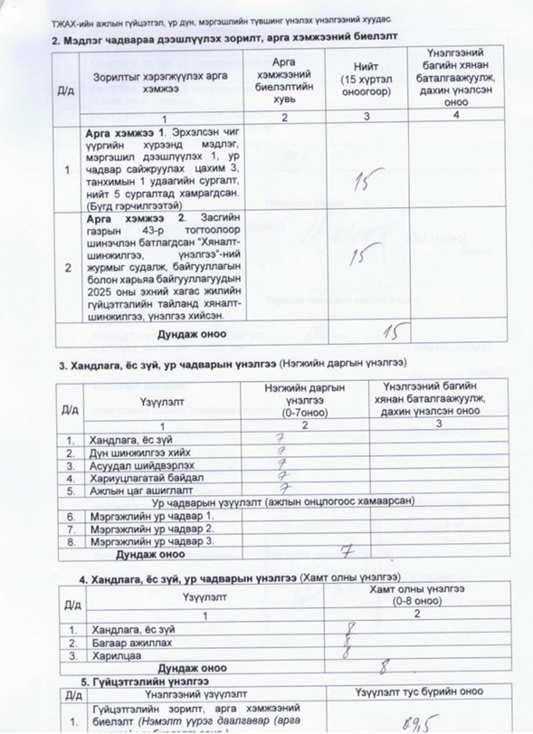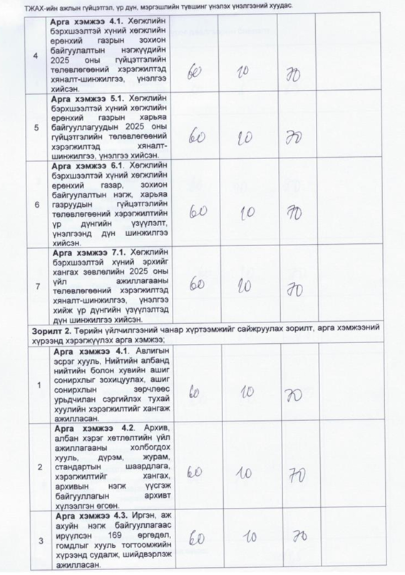 Ажлын гүйцэтгэлийн тайлан үнэлгээний хуудас-2025он /Тамгын газар/