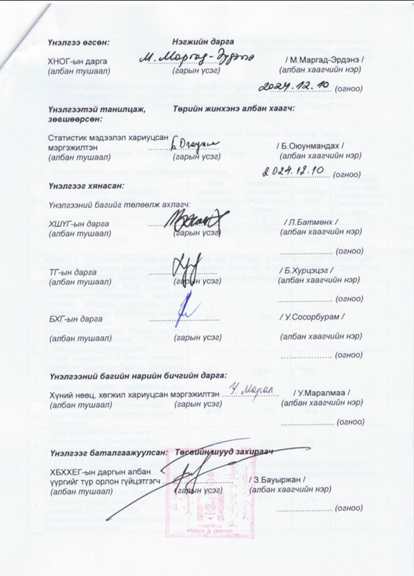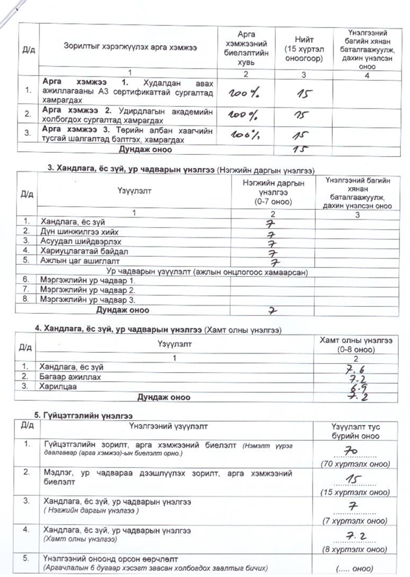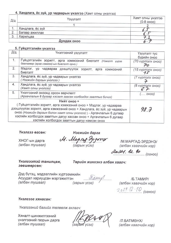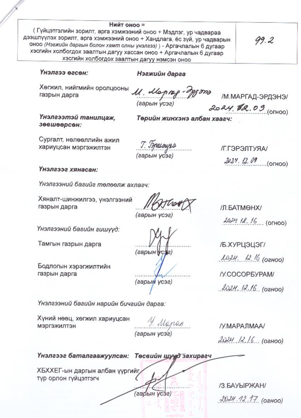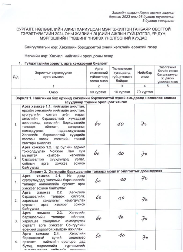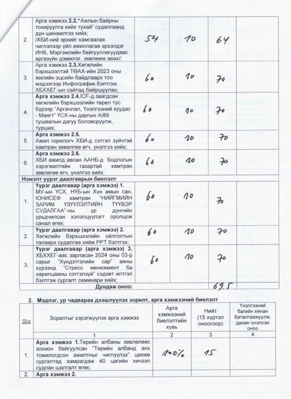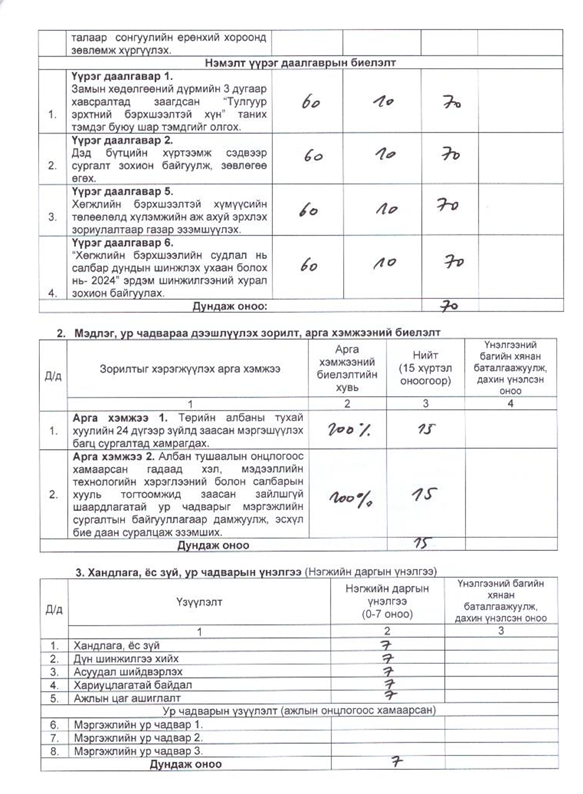 Ажлын гүйцэтгэлийн тайлан үнэлгээний хуудас-2024он /Хөгжил нийгмийн оролцооны газар/