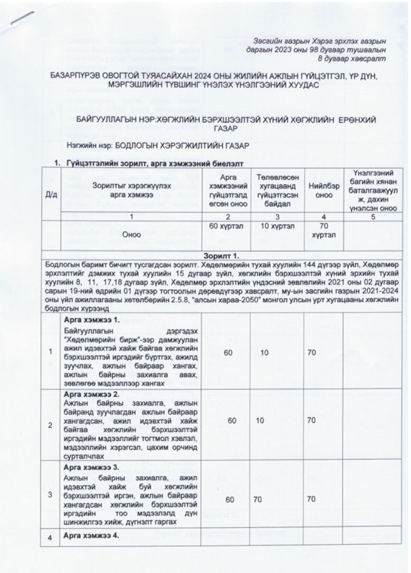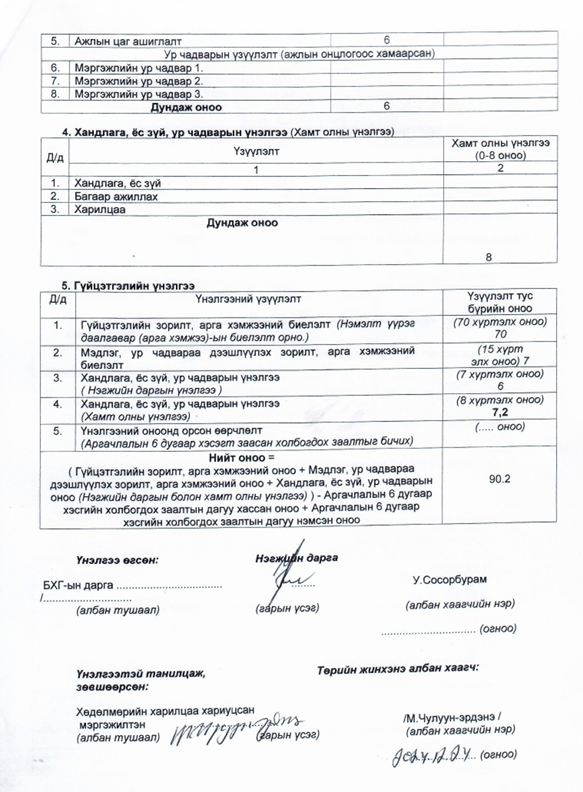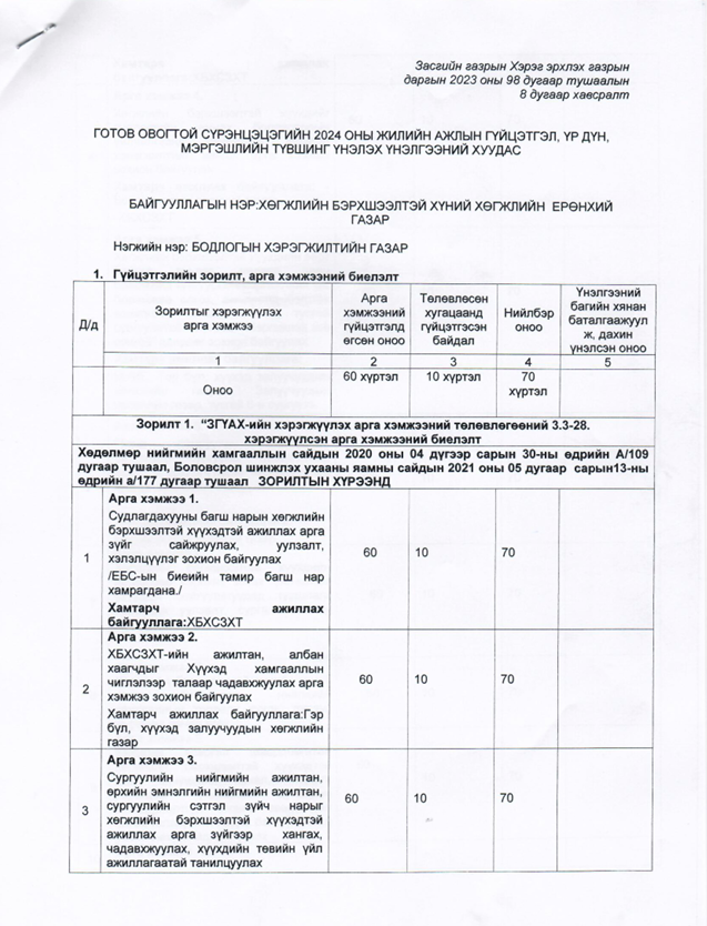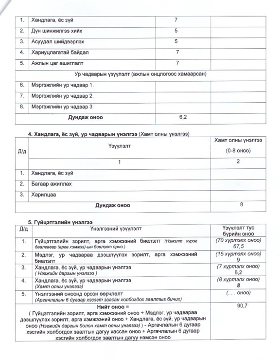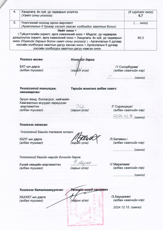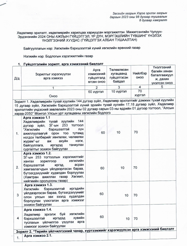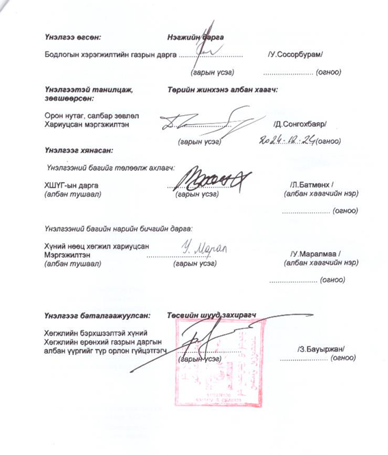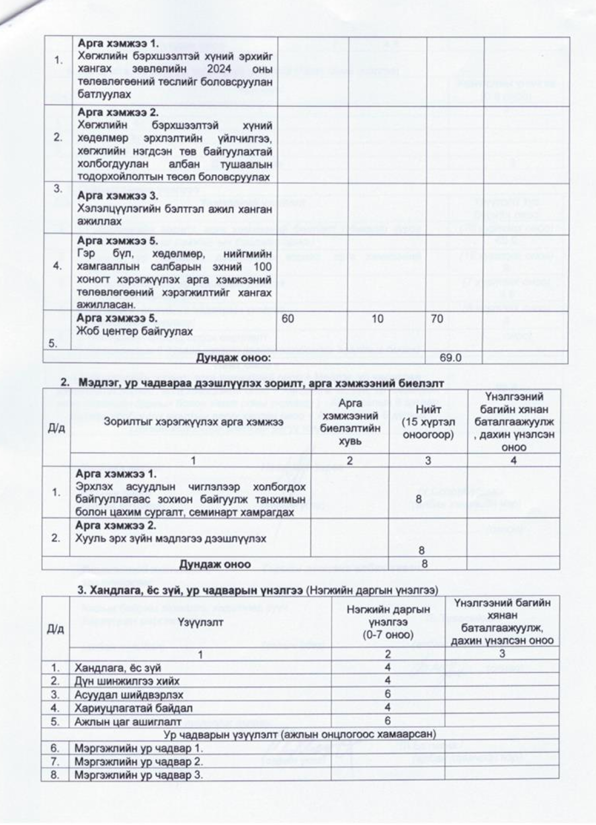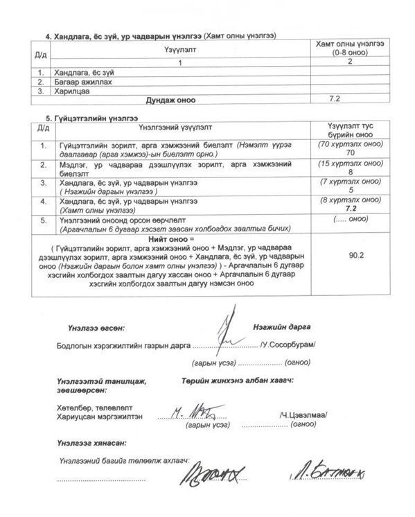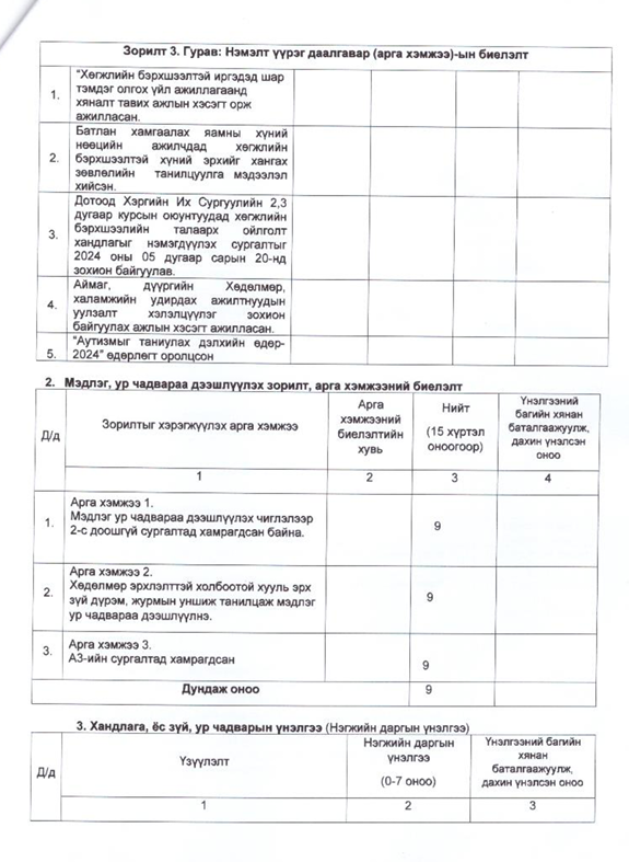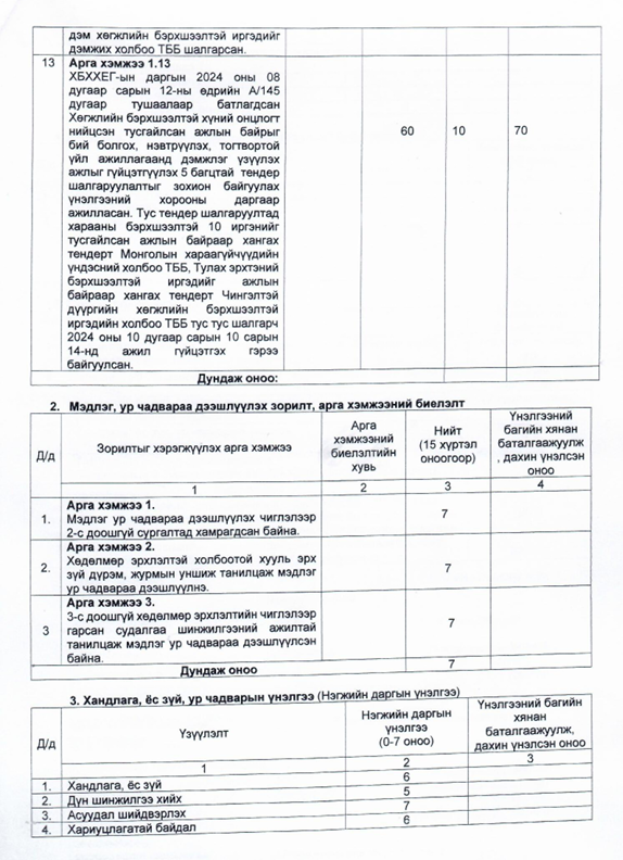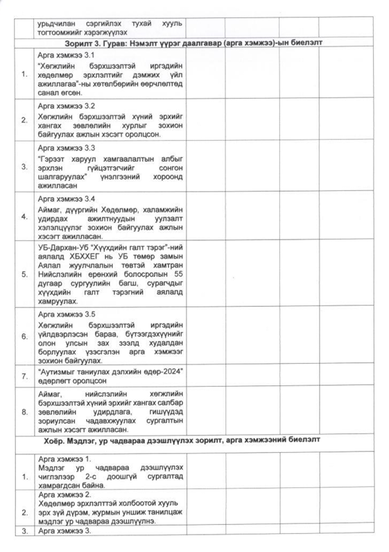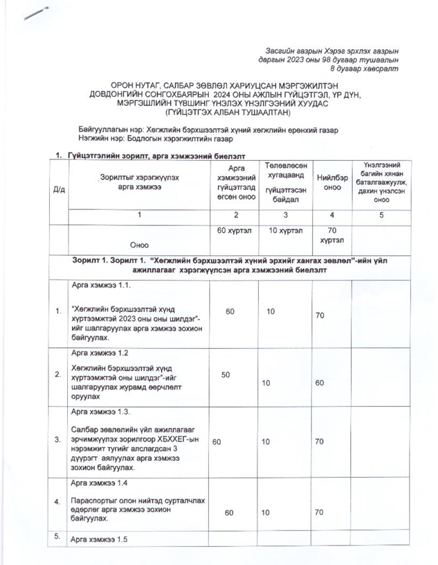 Ажлын гүйцэтгэлийн тайлан үнэлгээний хуудас-2024он /Бодлого, хэрэгжилтийн газар/