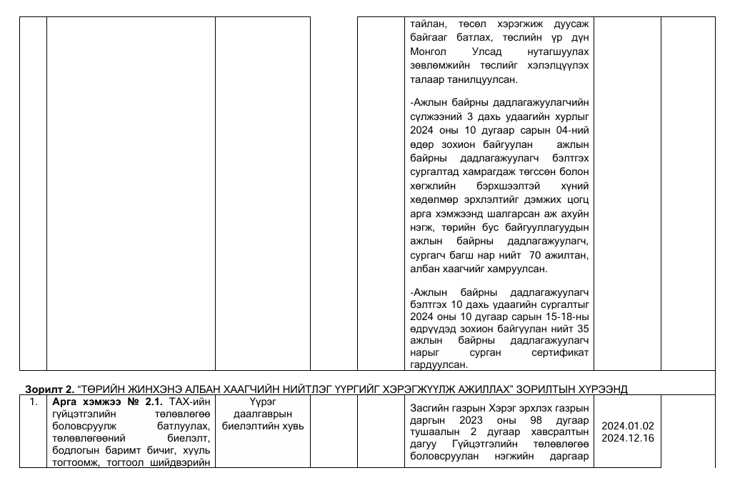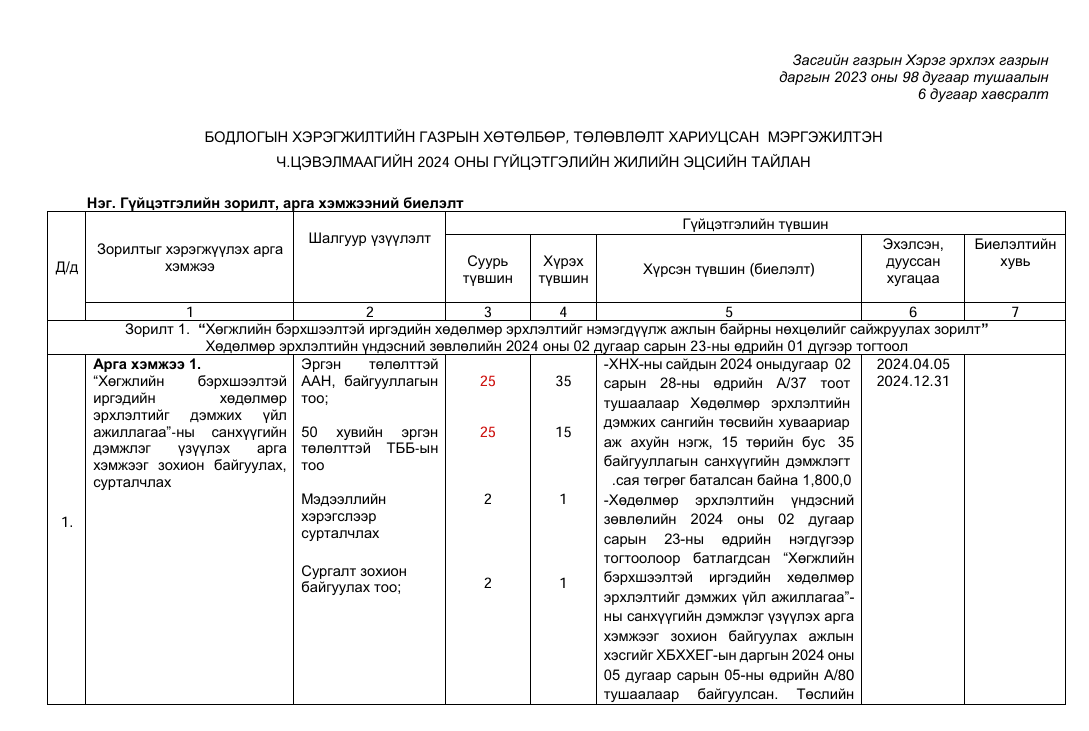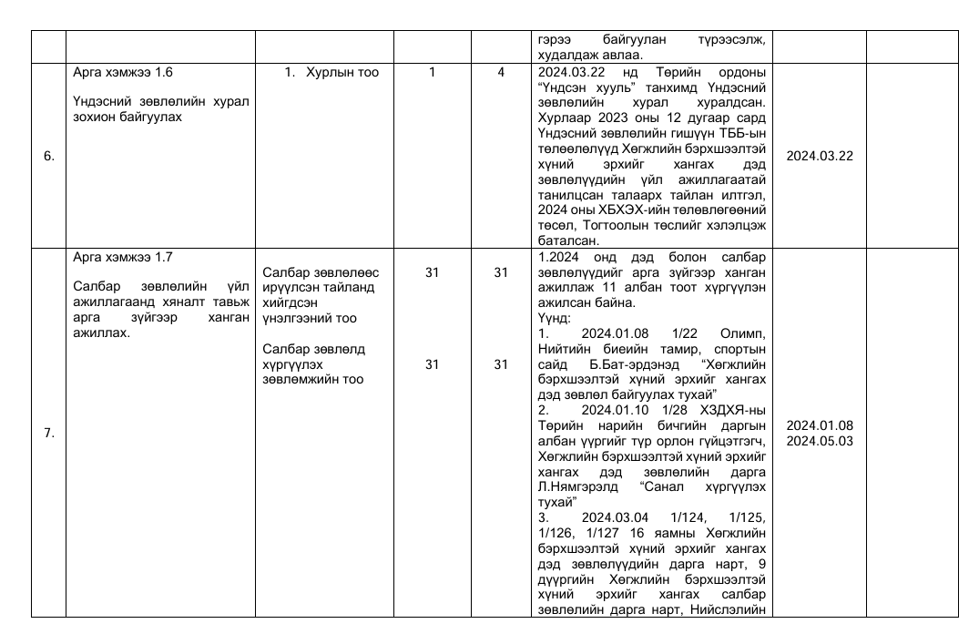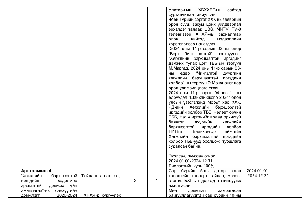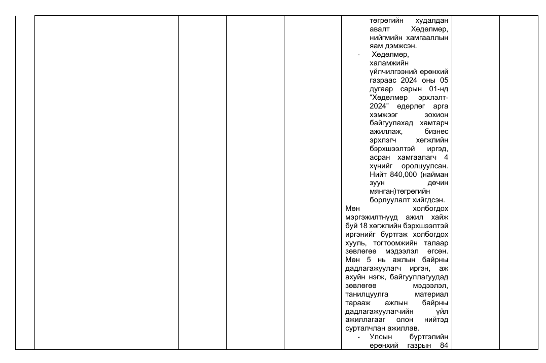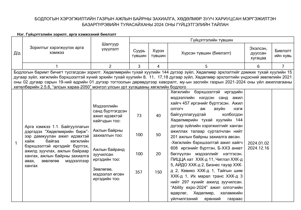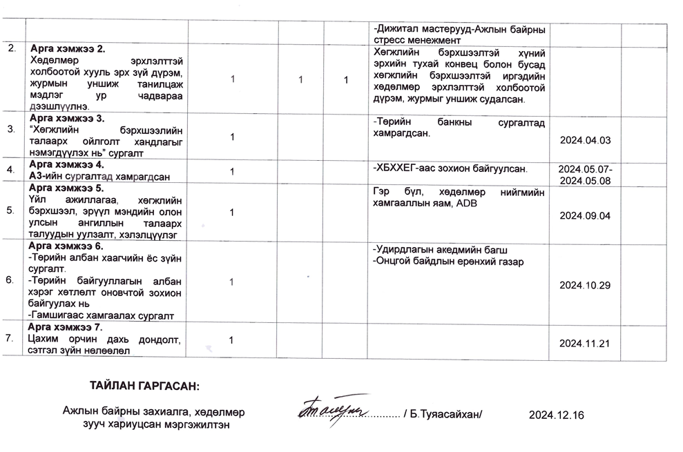 Төрийн жинхэнэ албан хаагчийн ажлын гүйцэтгэлийн тайлан-2024он /Хөгжил, нийгмийн оролцооны газар/