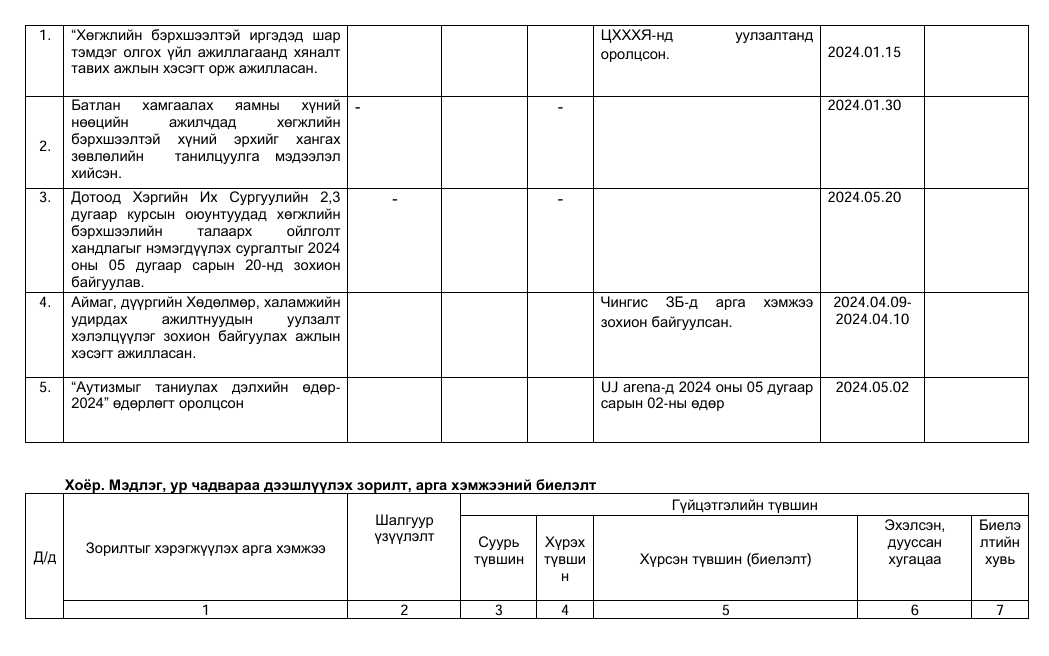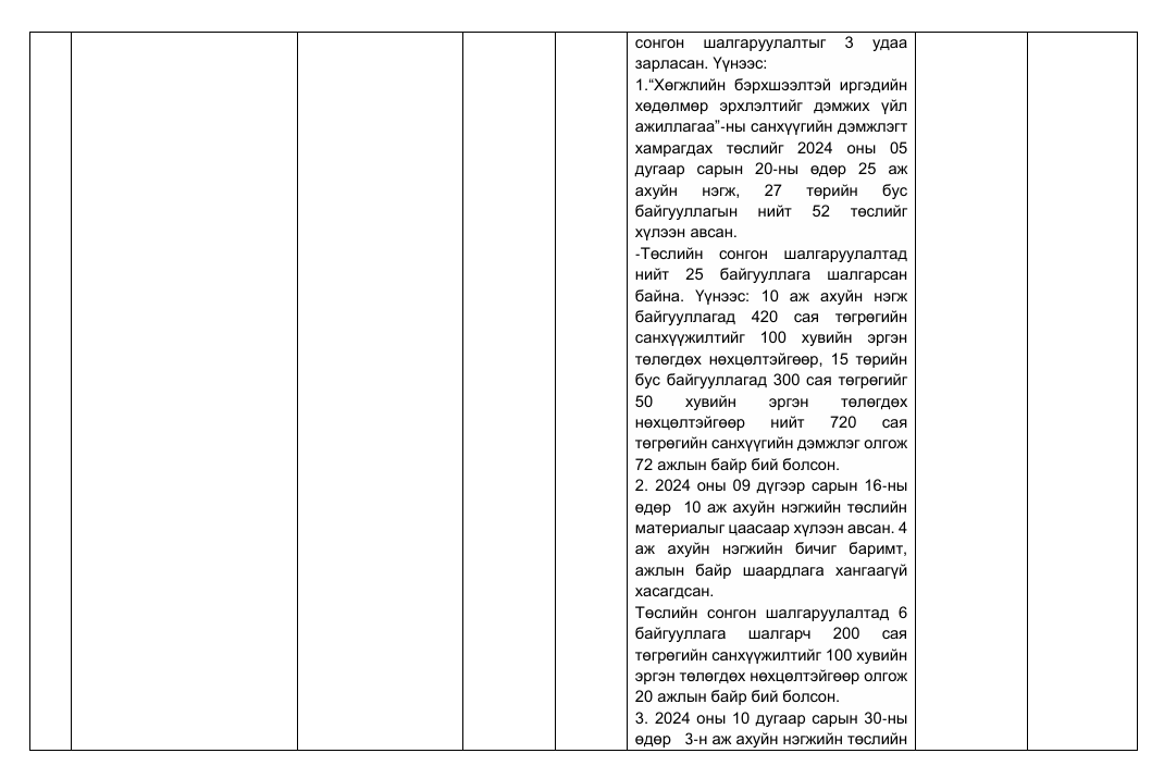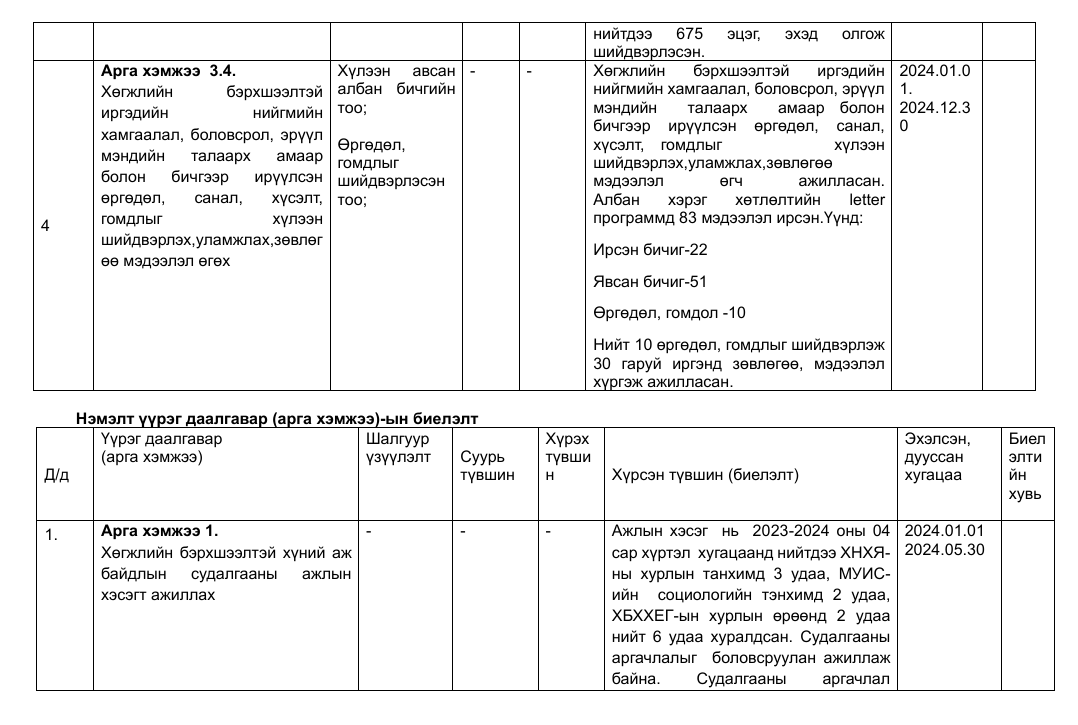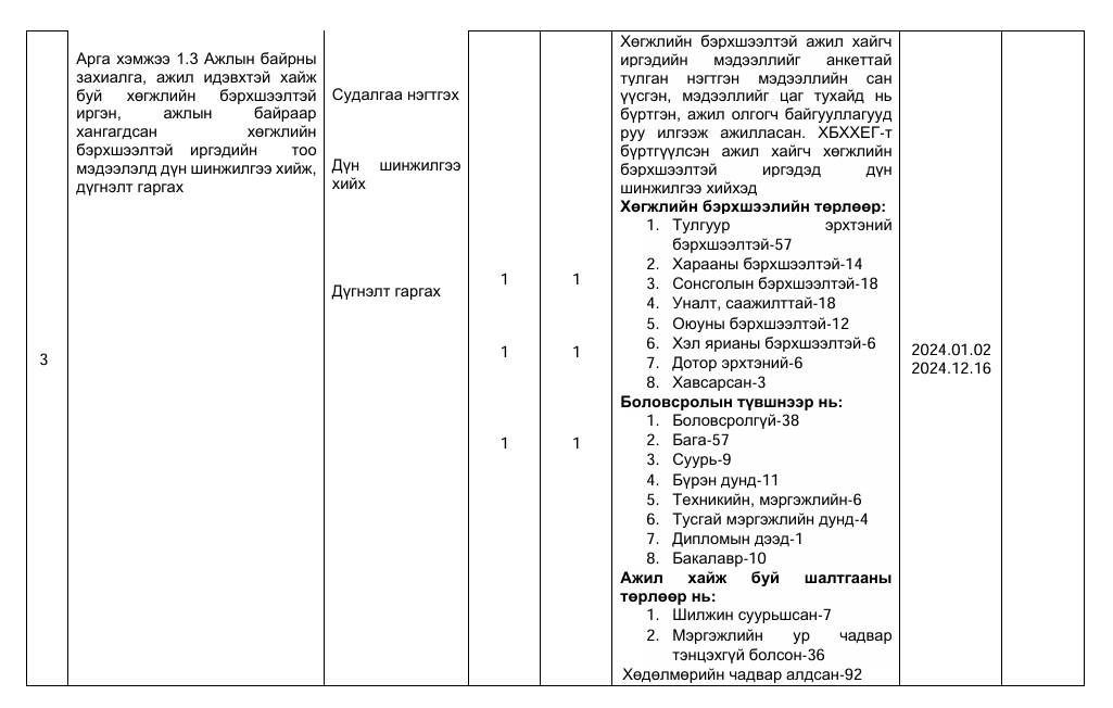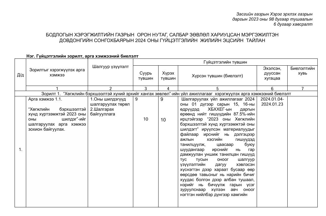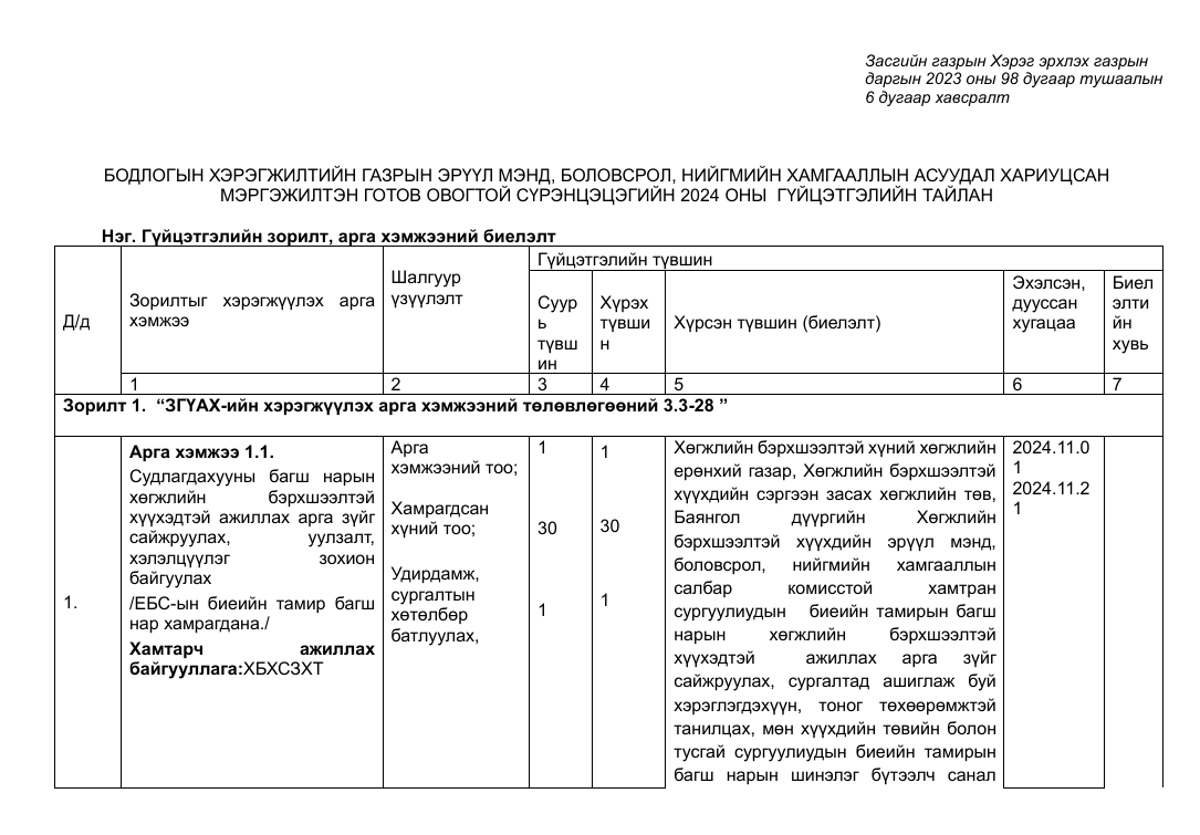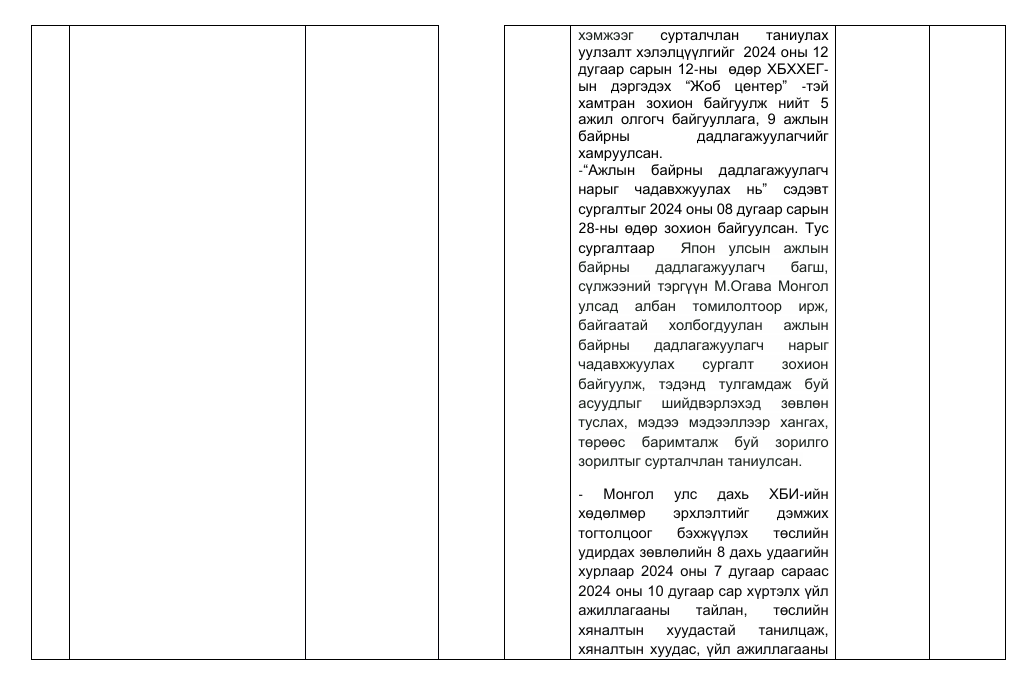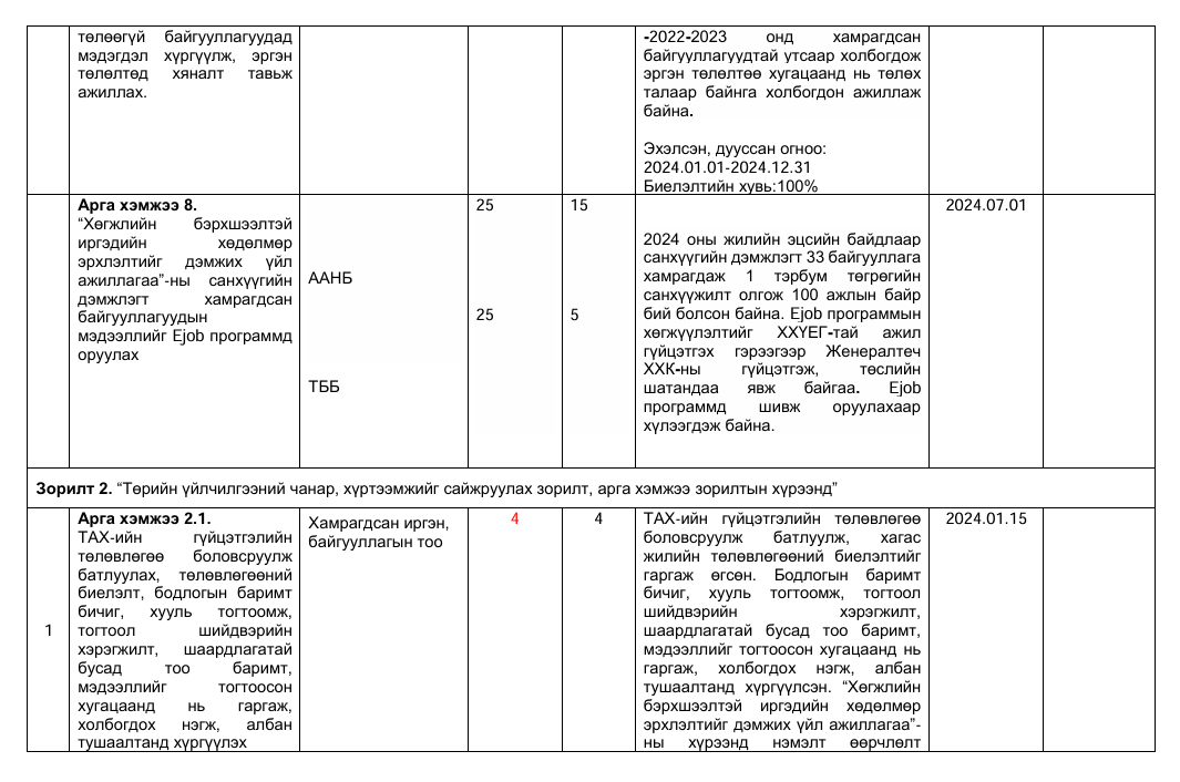 Төрийн жинхэнэ албан хаагчийн ажлын гүйцэтгэлийн тайлан-2024он /Хөгжил, нийгмийн оролцооны газар/