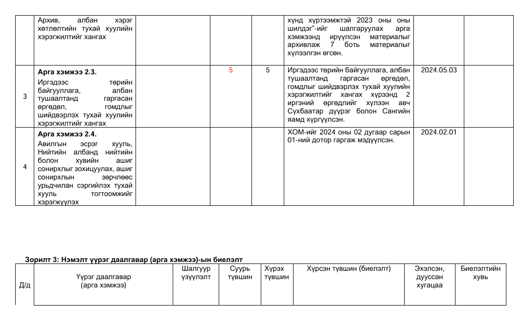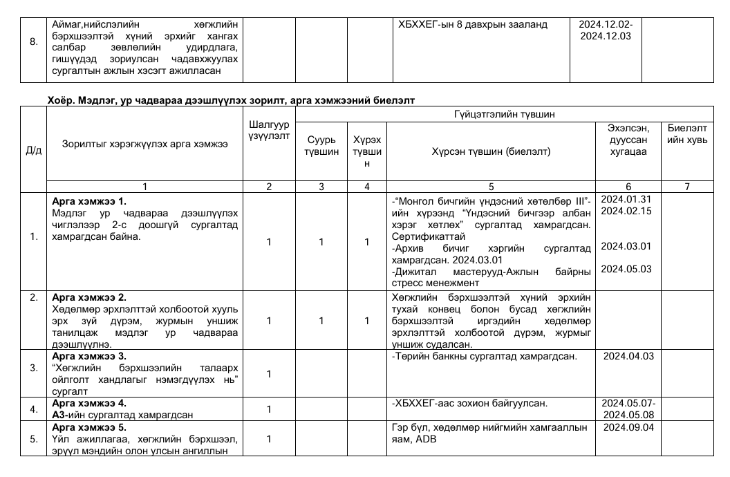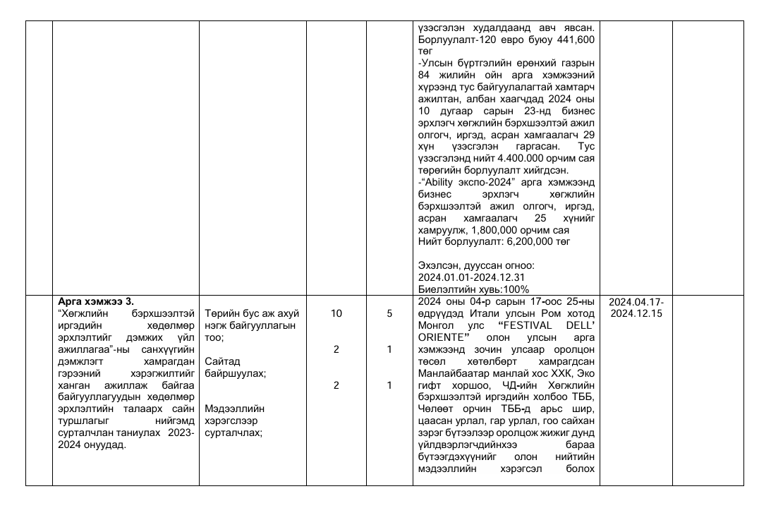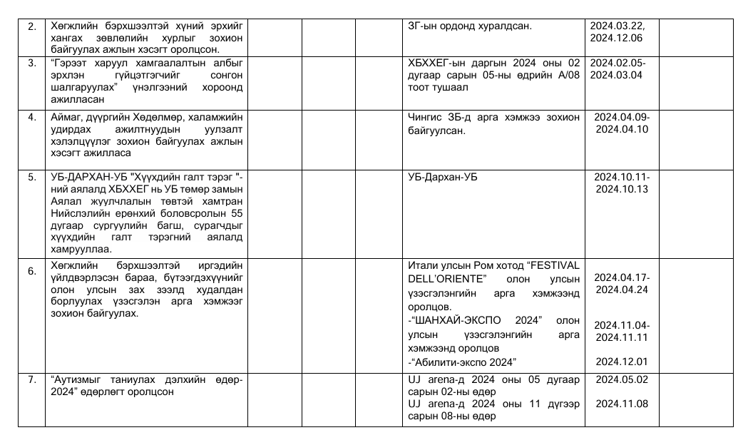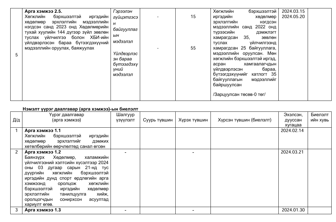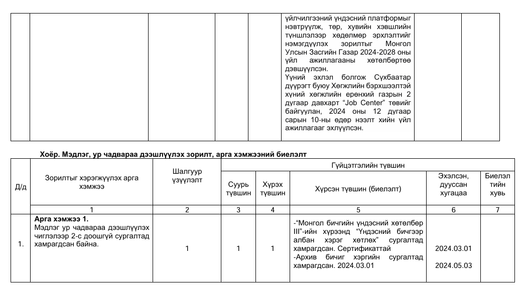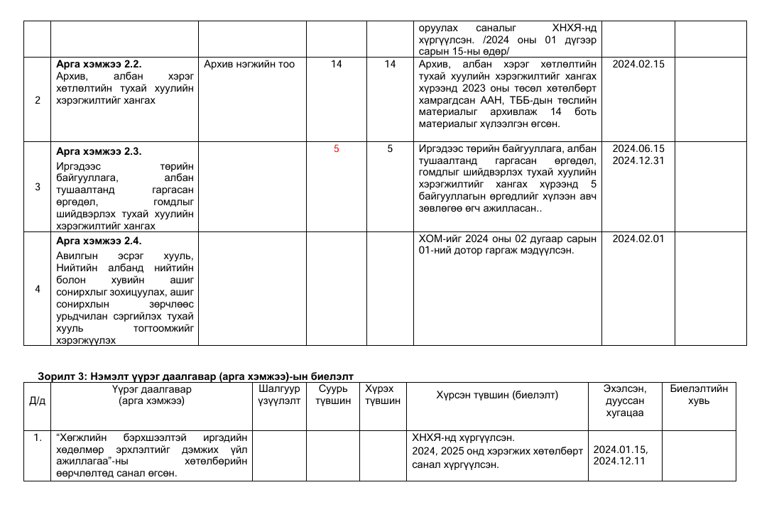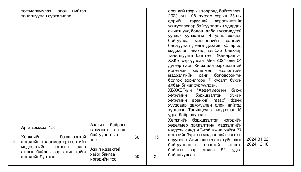 Төрийн жинхэнэ албан хаагчийн ажлын гүйцэтгэлийн тайлан-2024он /Хөгжил, нийгмийн оролцооны газар/