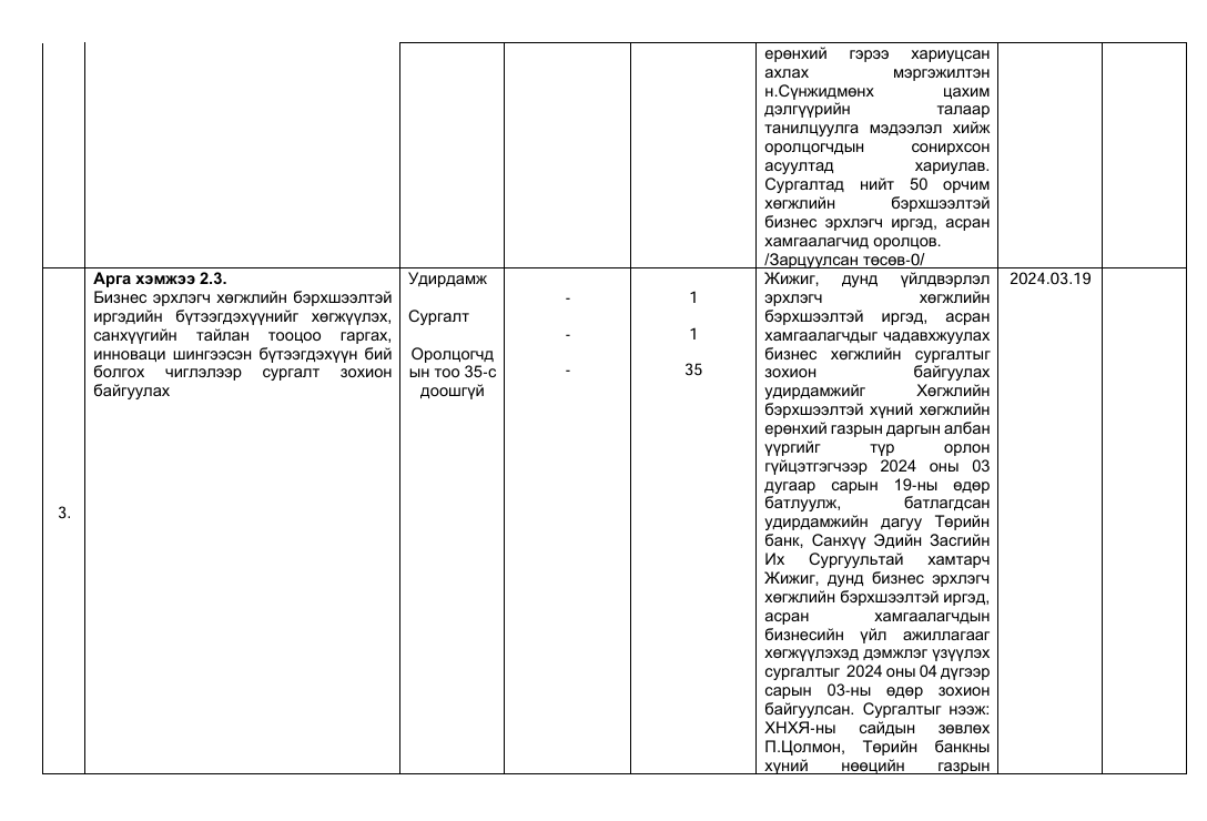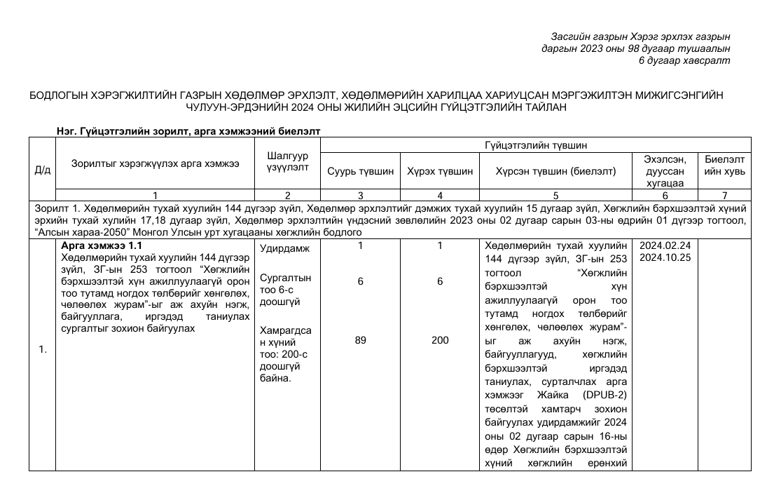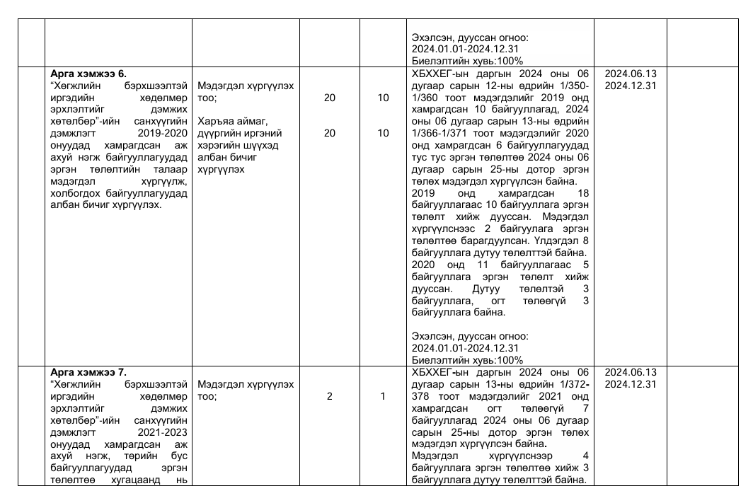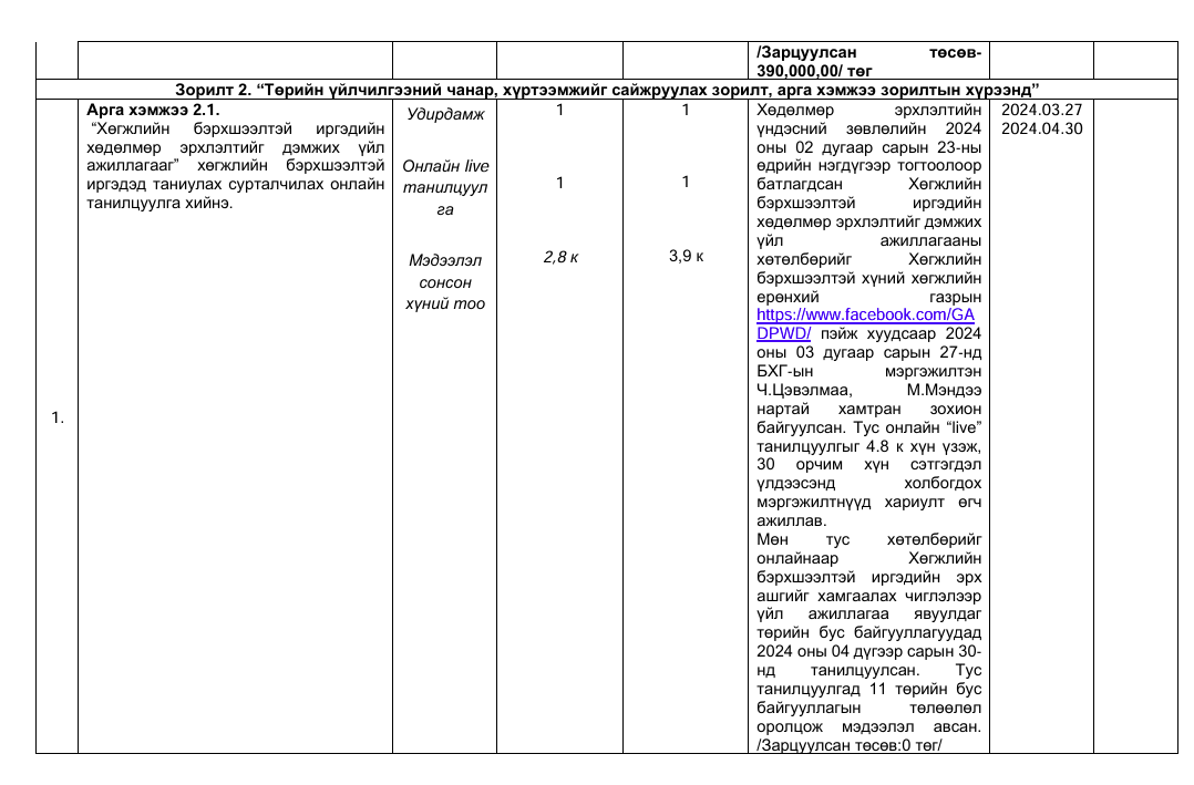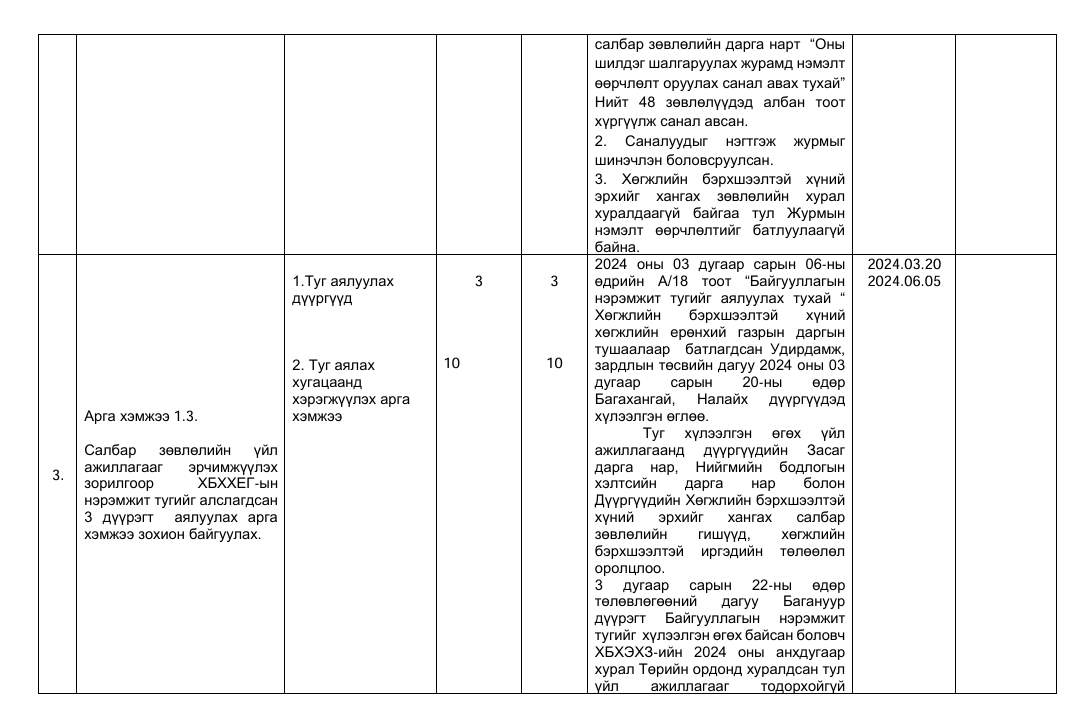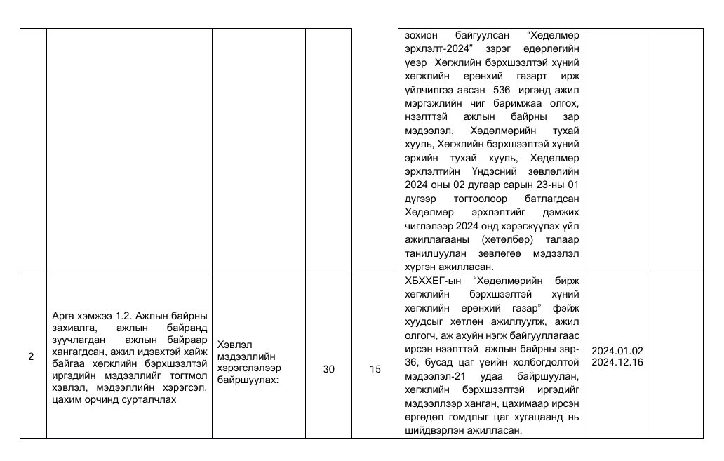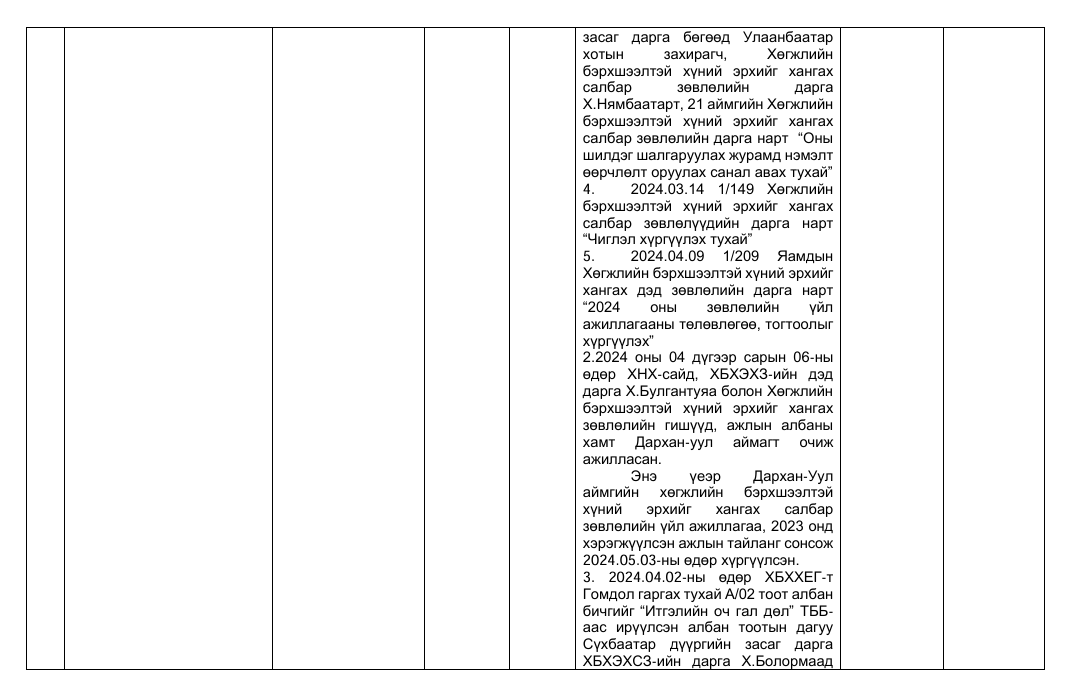 Төрийн жинхэнэ албан хаагчийн ажлын гүйцэтгэлийн тайлан-2024он /Хөгжил, нийгмийн оролцооны газар/