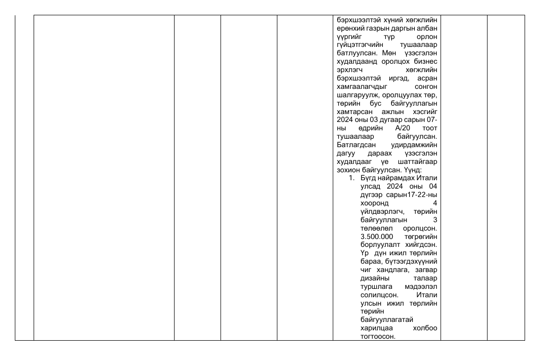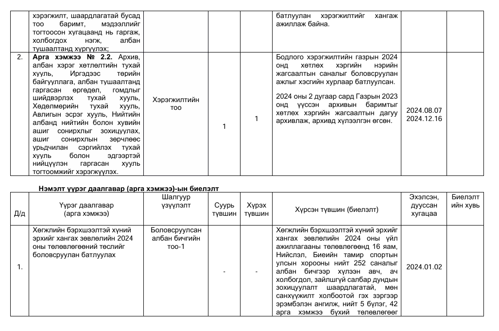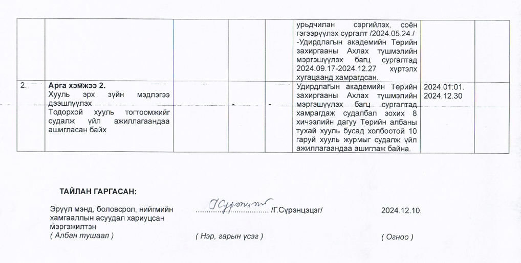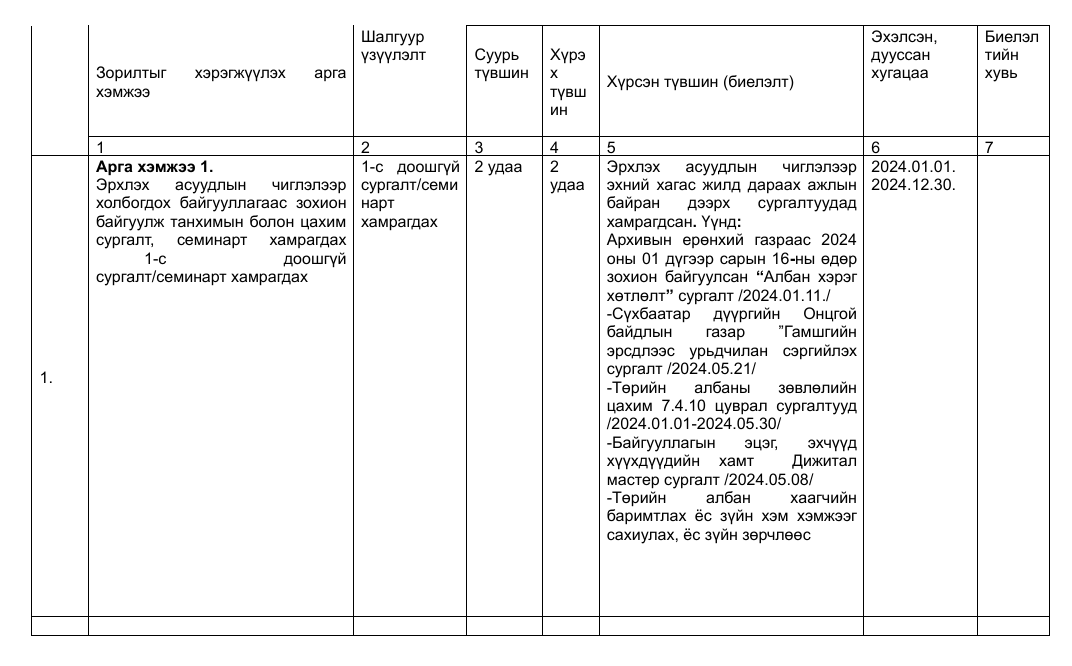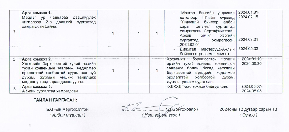 Төрийн жинхэнэ албан хаагчийн ажлын гүйцэтгэлийн тайлан-2024он /Тамгын газар/