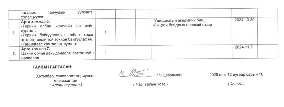 Төрийн жинхэнэ албан хаагчийн ажлын гүйцэтгэлийн тайлан-2025он /Тамгын газар/