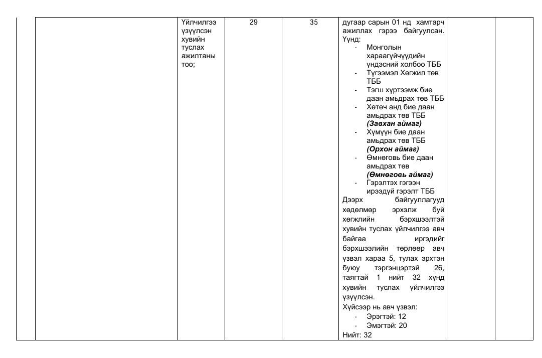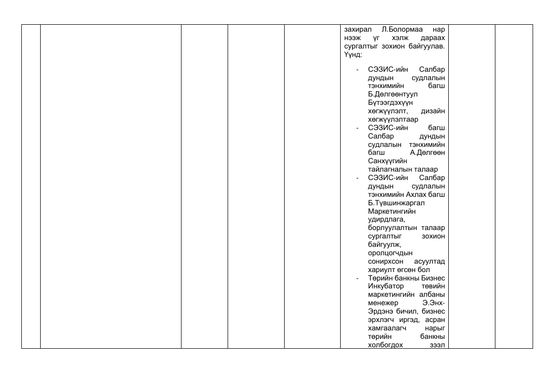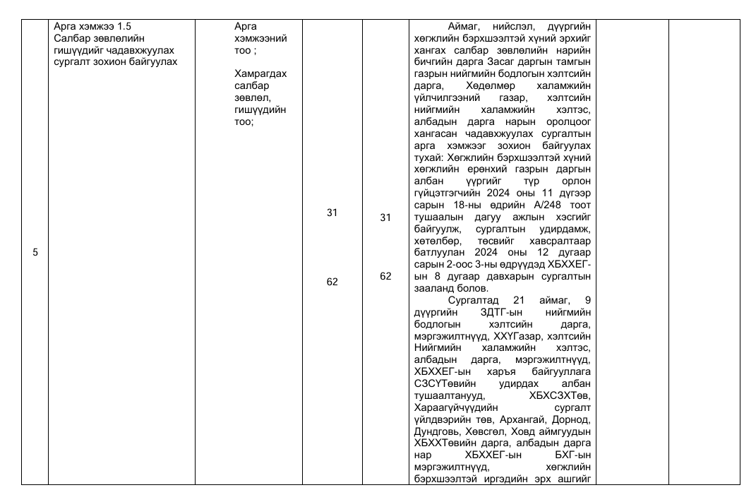 1. Орон нутаг, салбар зөвлөл хариуцсан мэргэжилтэн