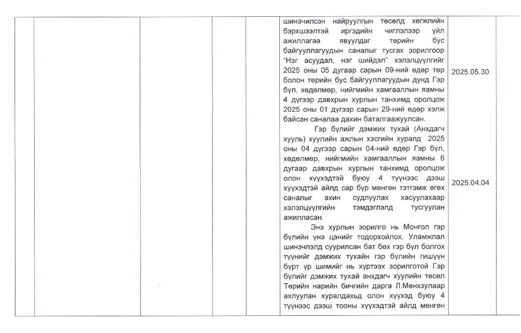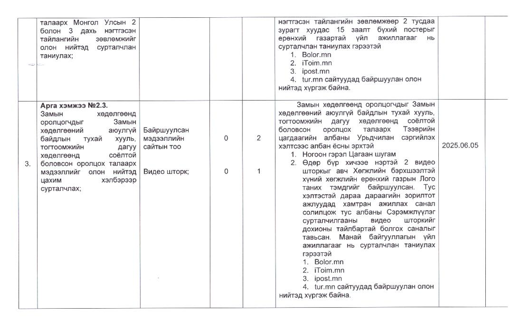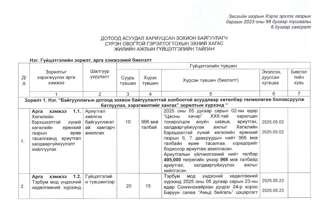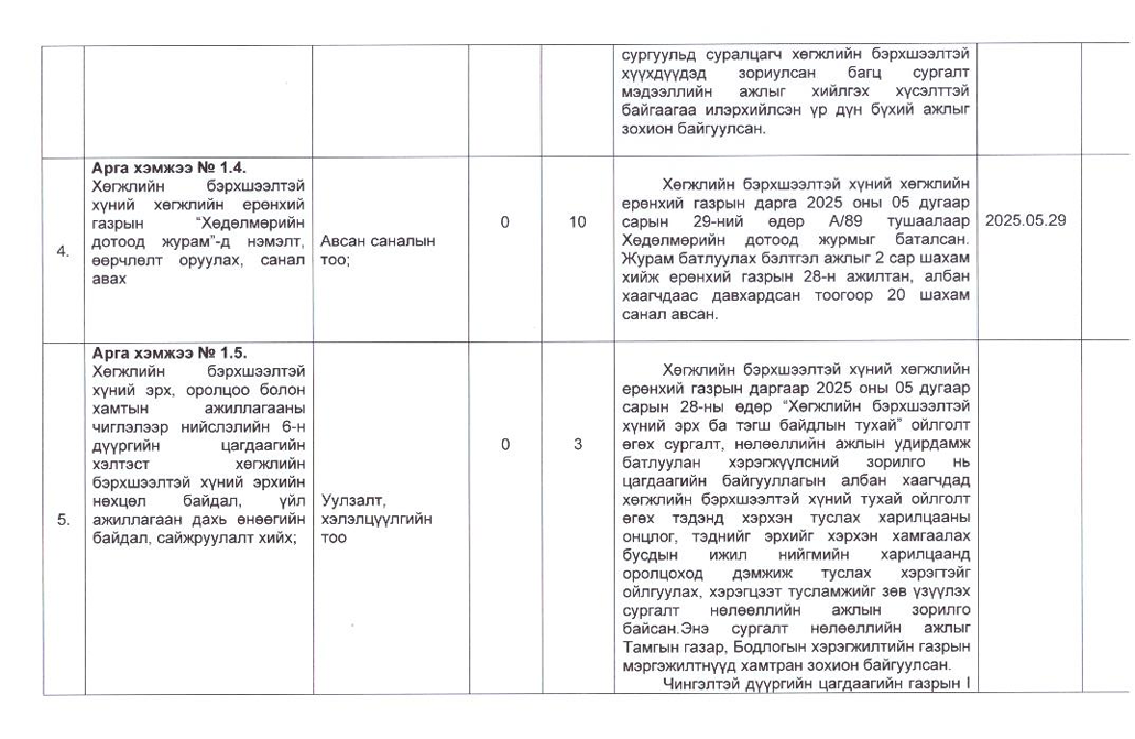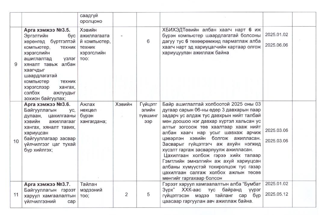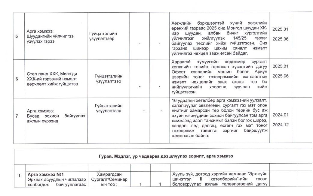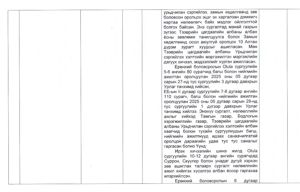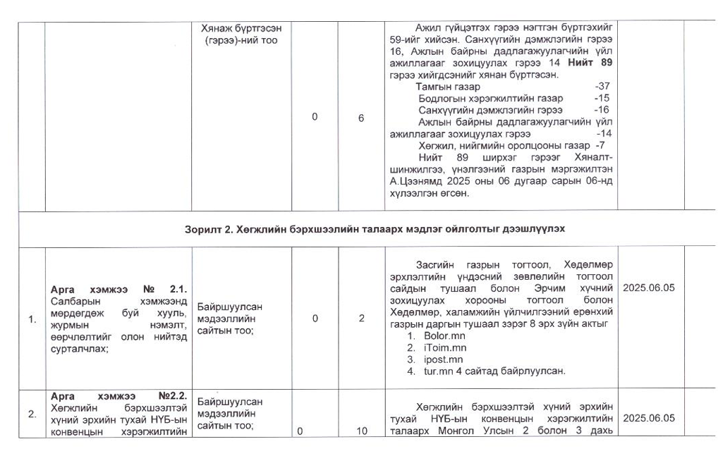 Төрийн жинхэнэ албан хаагчийн ажлын гүйцэтгэлийн тайлан-2025он /Хөгжил, нийгмийн оролцооны газар/