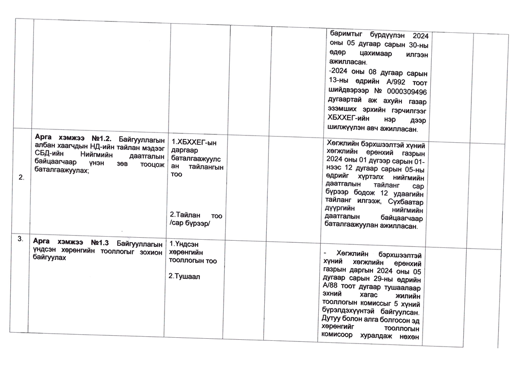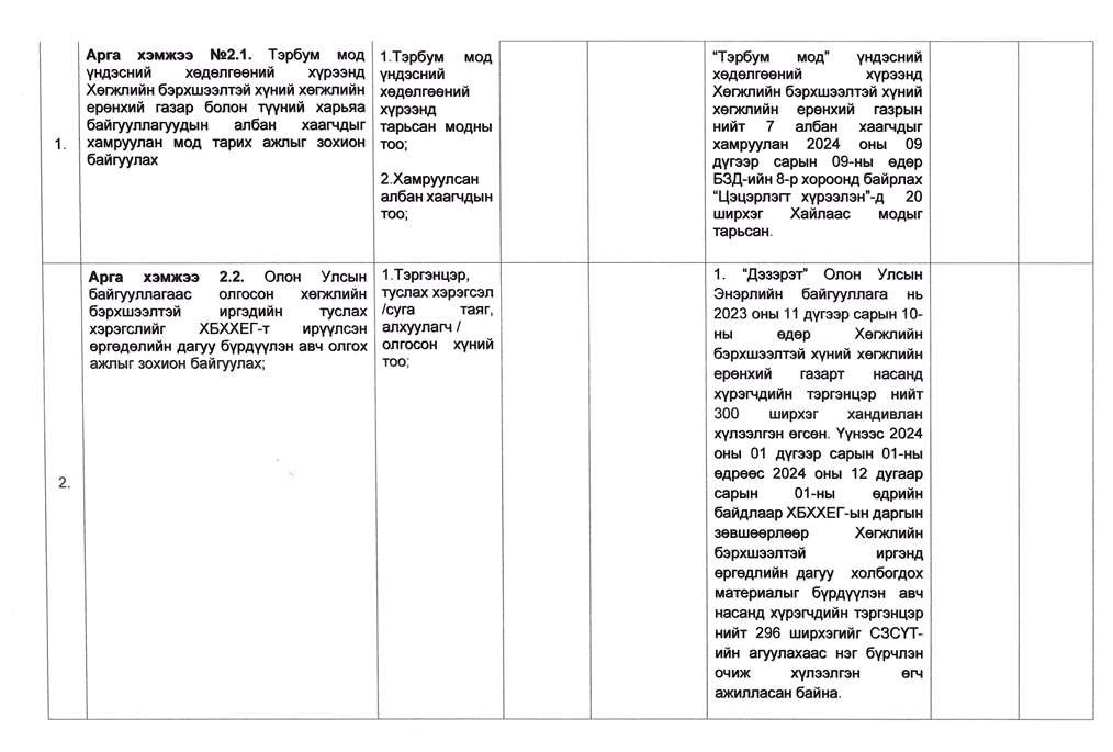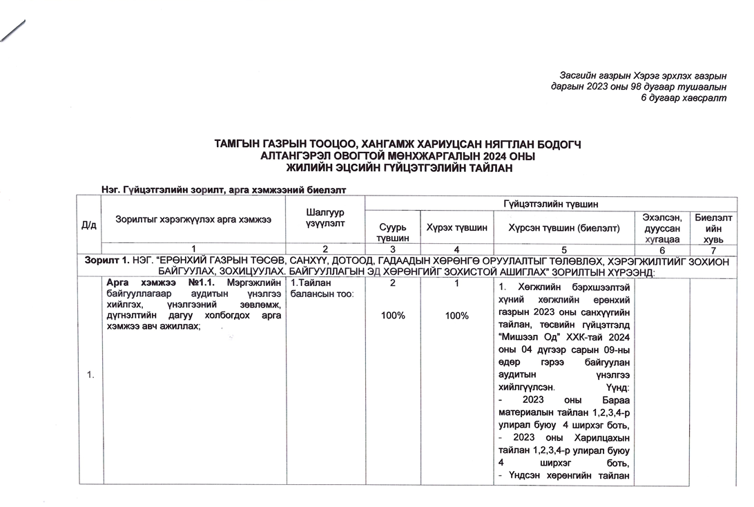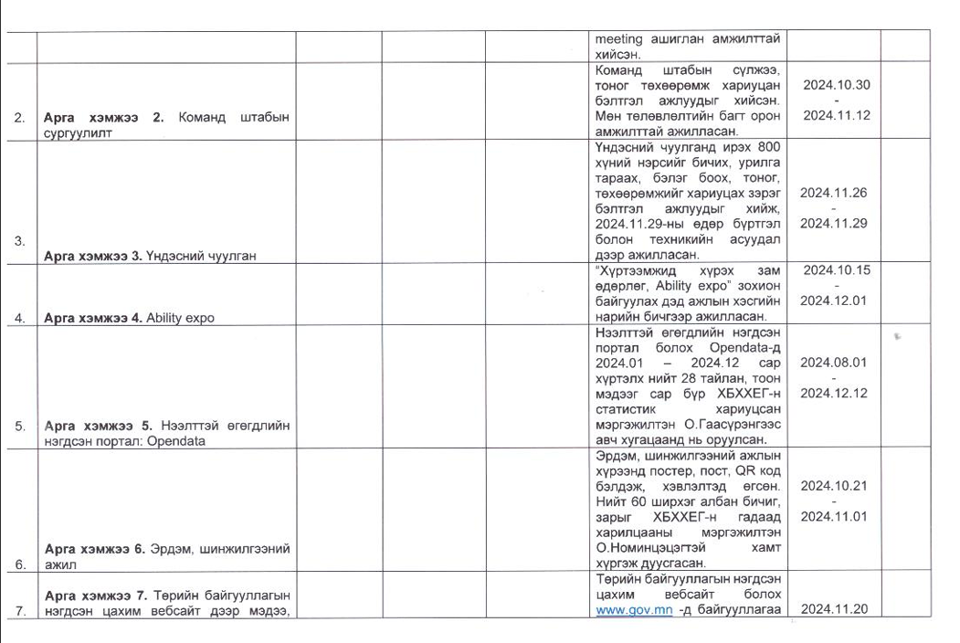 Төрийн жинхэнэ албан хаагчийн ажлын гүйцэтгэлийн тайлан-2024он /Хөгжил, нийгмийн оролцооны газар/