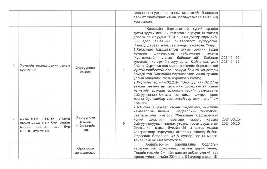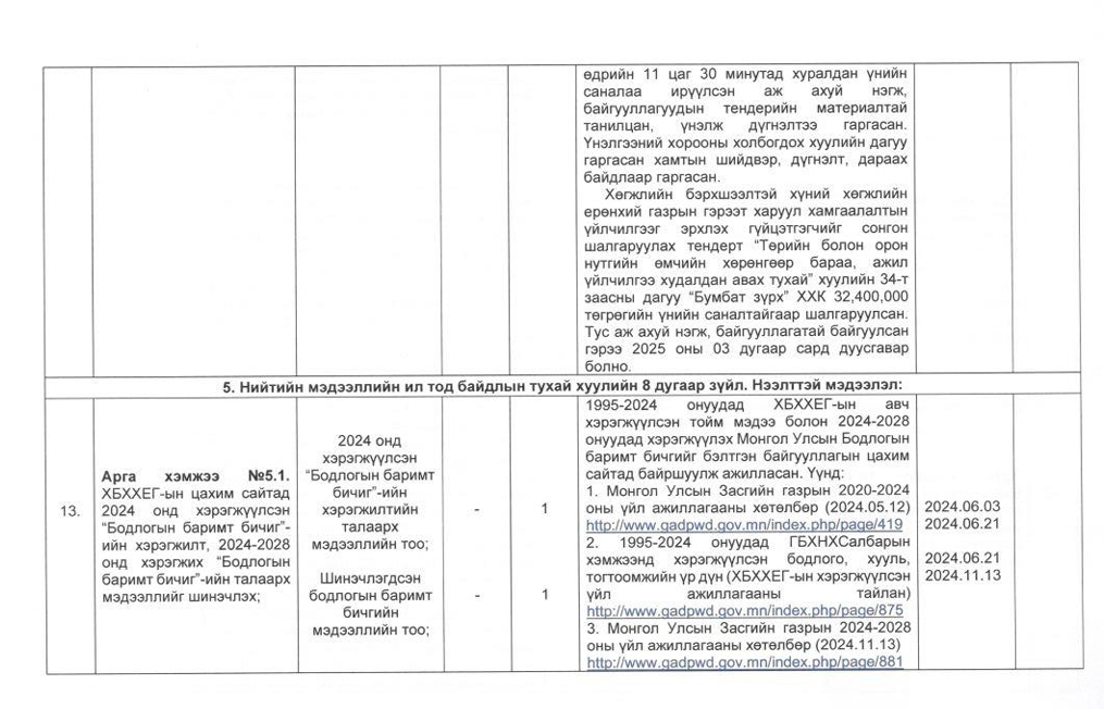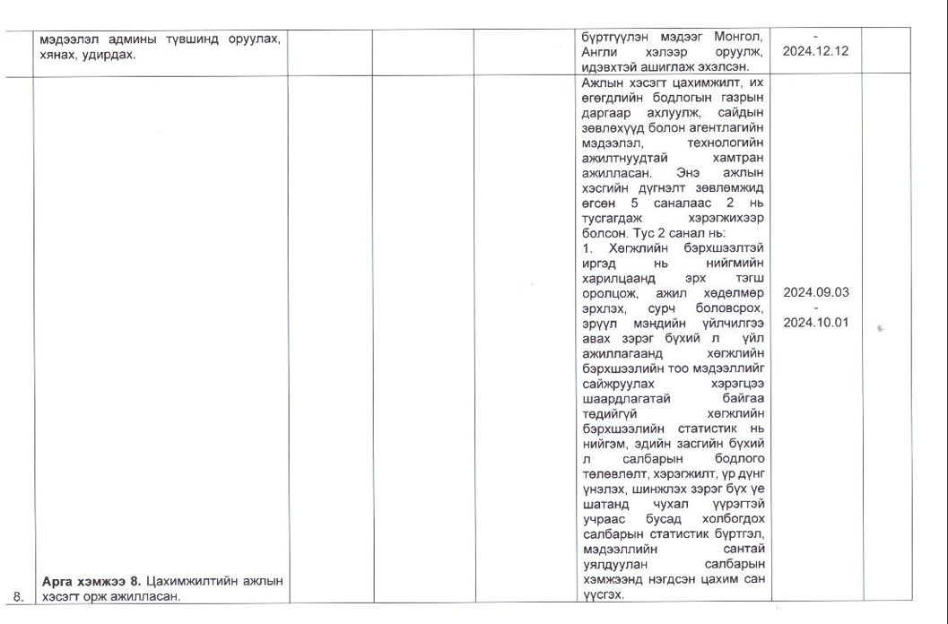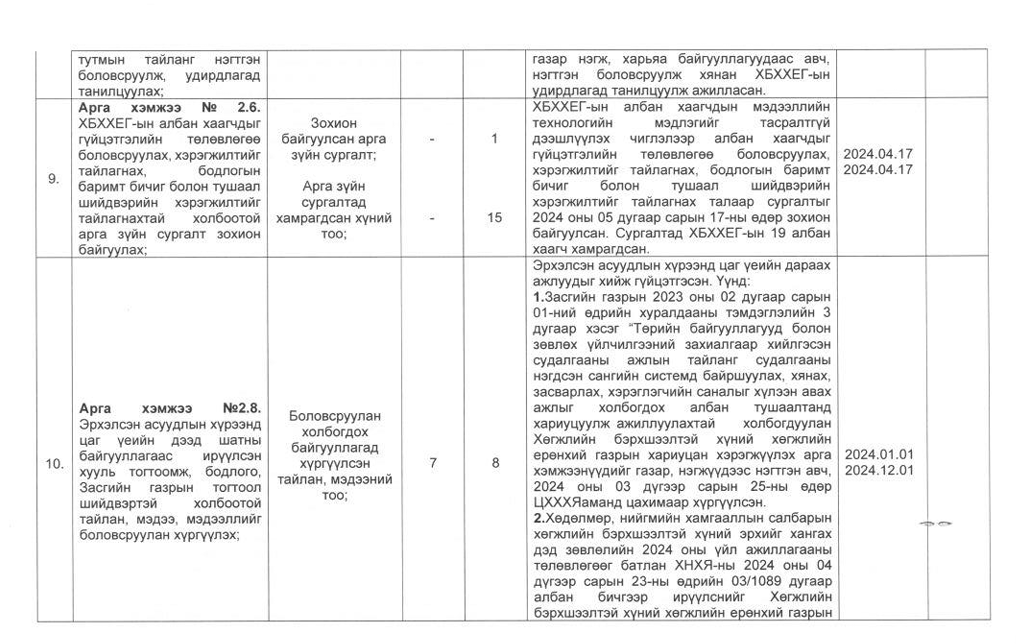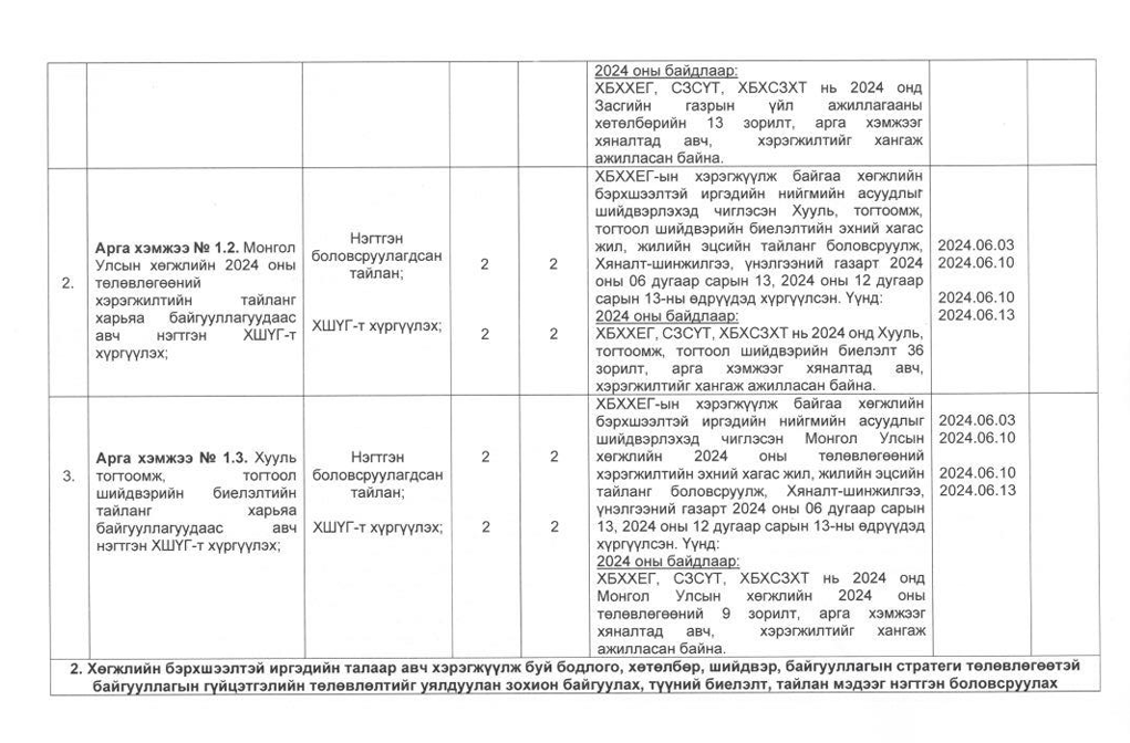 Төрийн жинхэнэ албан хаагчийн ажлын гүйцэтгэлийн тайлан-2024он /Хөгжил, нийгмийн оролцооны газар/