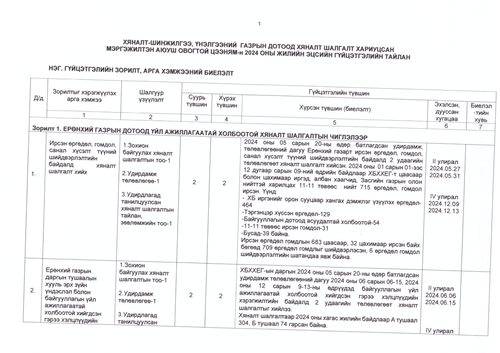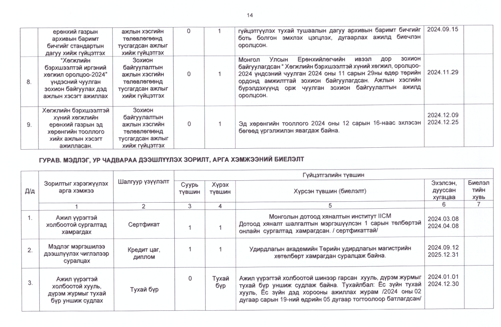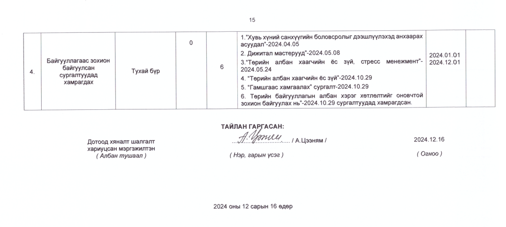 Төрийн жинхэнэ албан хаагчийн ажлын гүйцэтгэлийн тайлан-2024он /Хөгжил, нийгмийн оролцооны газар/