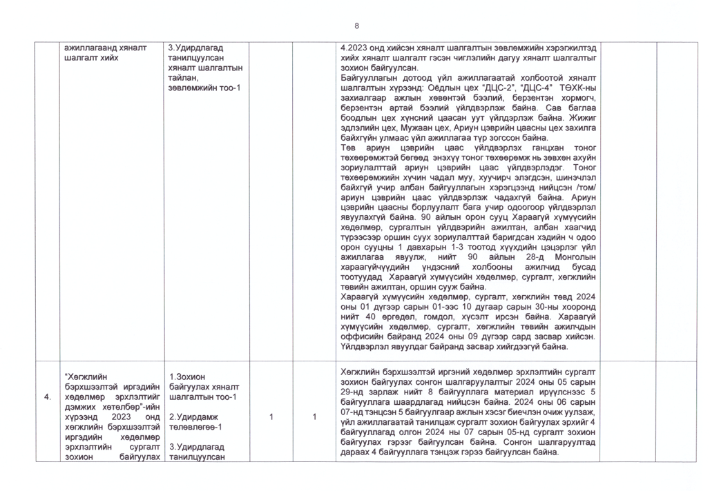 Авч хэрэгжүүлсэн арга хэмжээ түүний үр дүн