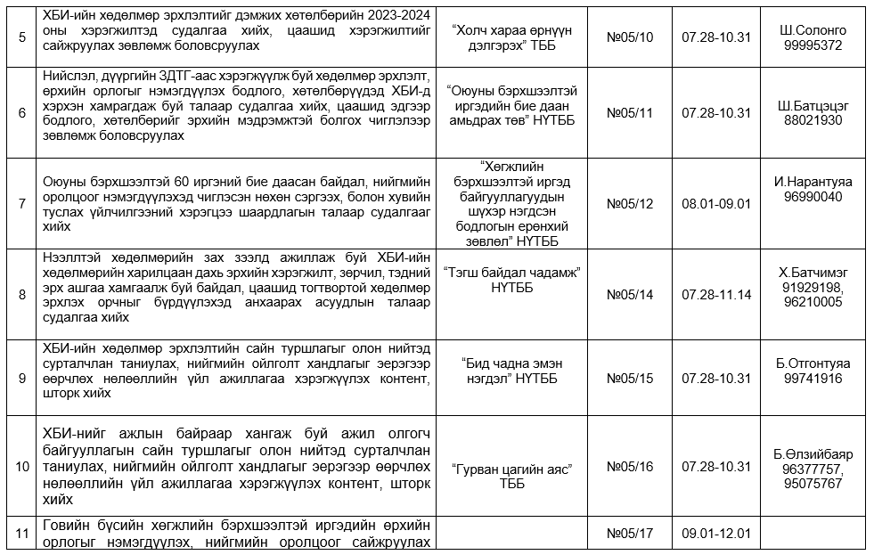 Таны чадамж, хэрэгцээ, ажиллах сонирхолд тулгуурлан бодлогын шинэчлэл, ажлын байрны ээлтэй орчин б... 2025-08-26 263ОЮУНЫ БЭРХШЭЭЛТЭЙ ИРГЭДИЙН ЭРҮҮЛ МЭНД, ЭРХ ЗҮЙН АСУУДЛААР УУЛЗАЛТ , ЯРИЛЦЛАГА ЗОХИОН БАЙГУУЛАГДЛАА
