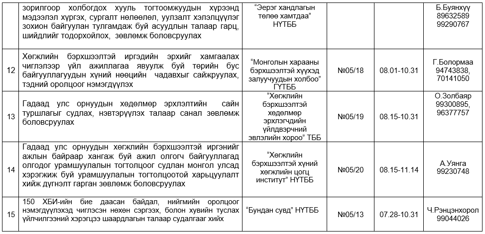 -Хөгжлийн бэрхшээлийн талаарх мэдлэг ойлголтыг нэмэгдүүлэх, хөгжлийн бэрхшээл судлал салбар дундын... 2025-08-19 274ЗАРЛАЛ
