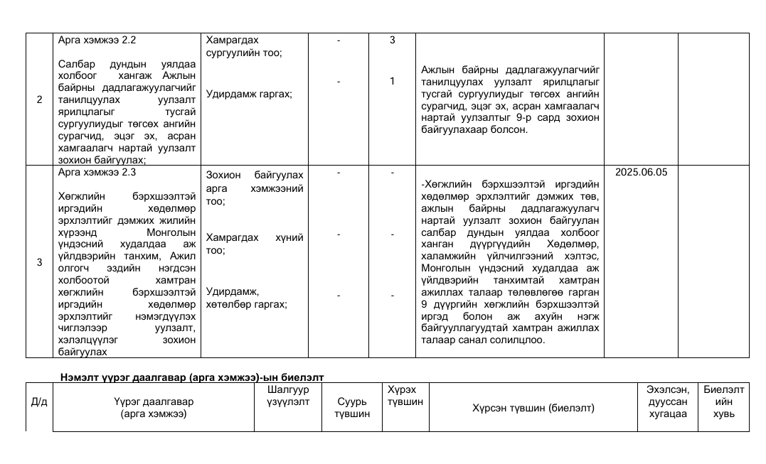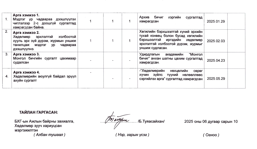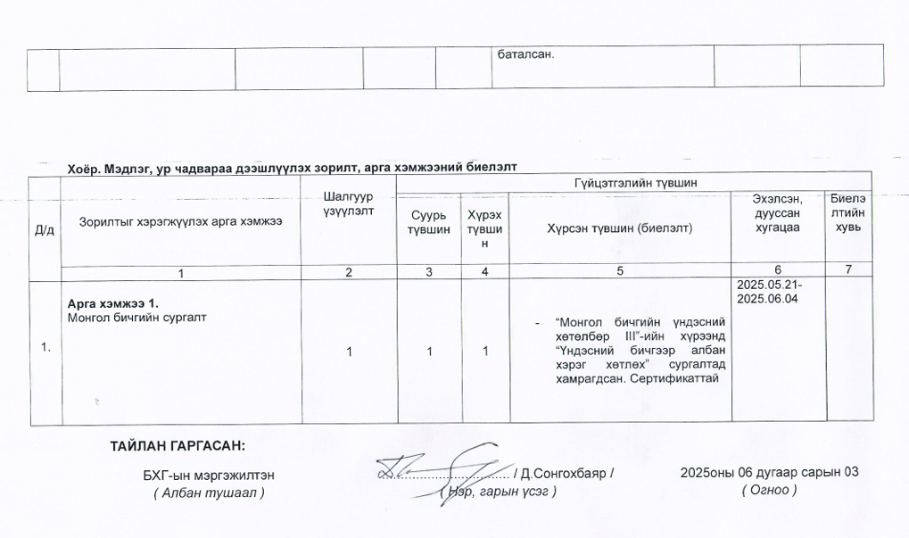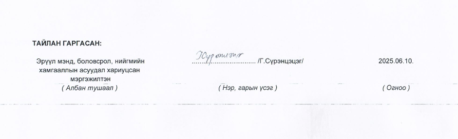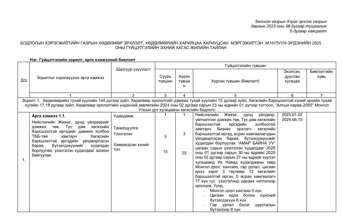 Төрийн жинхэнэ албан хаагчийн ажлын гүйцэтгэлийн тайлан-2025он /Бодлогын хэрэгжилтийн газар/