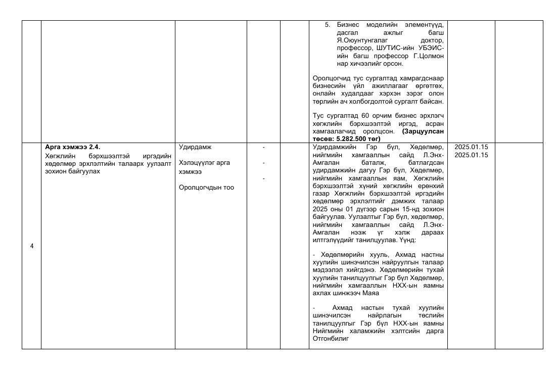 4.  Ажлын байрны захиалга, хөдөлмөр зууч хариуцсан мэргэжилтэн