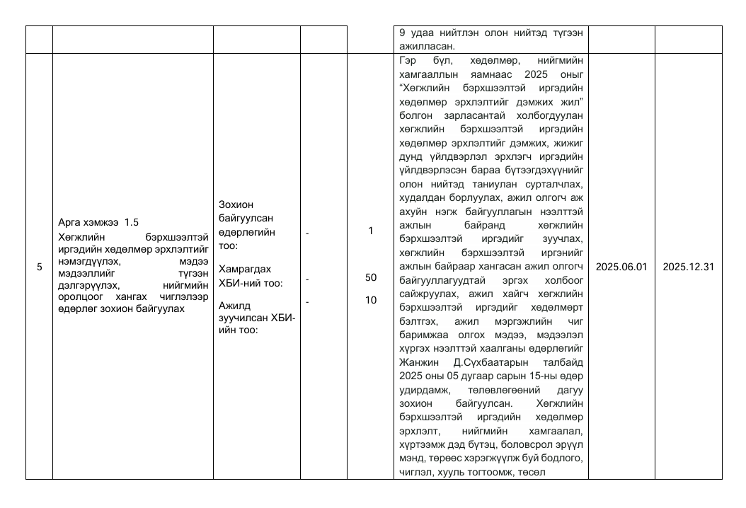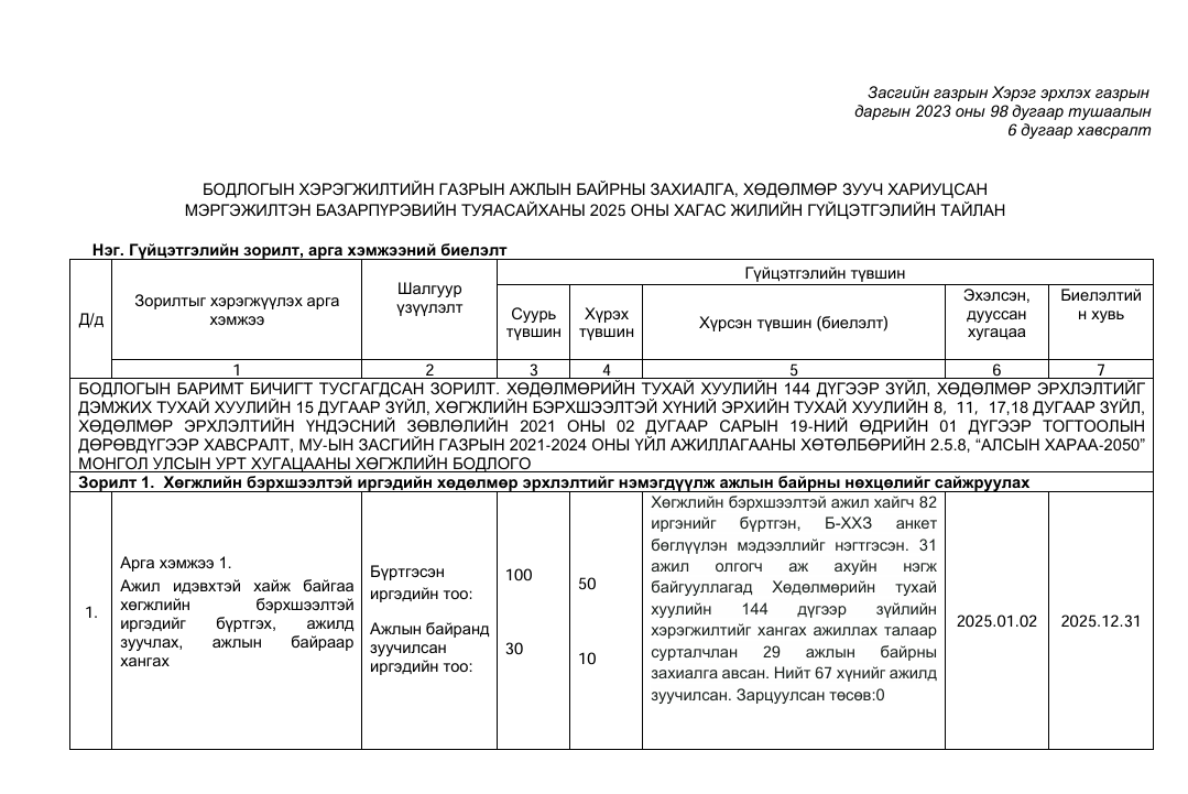 6. Хөдөлмөр эрхлэлт, хөдөлмөрийн харилцаа хариуцсан мэргэжилтэн