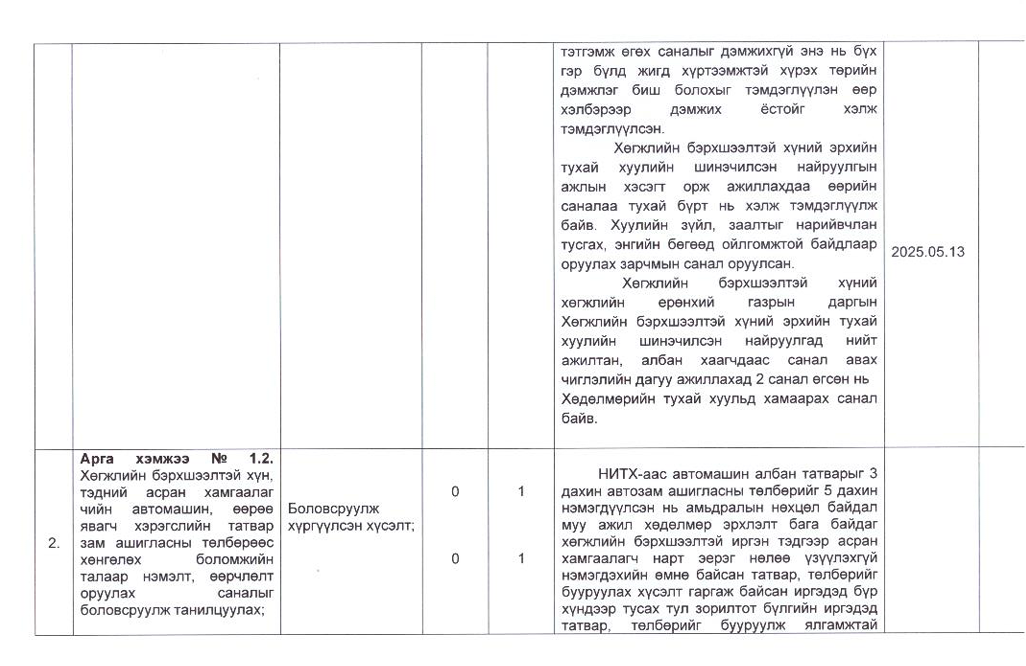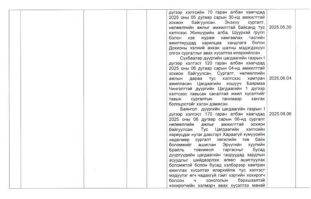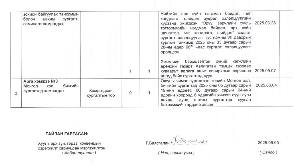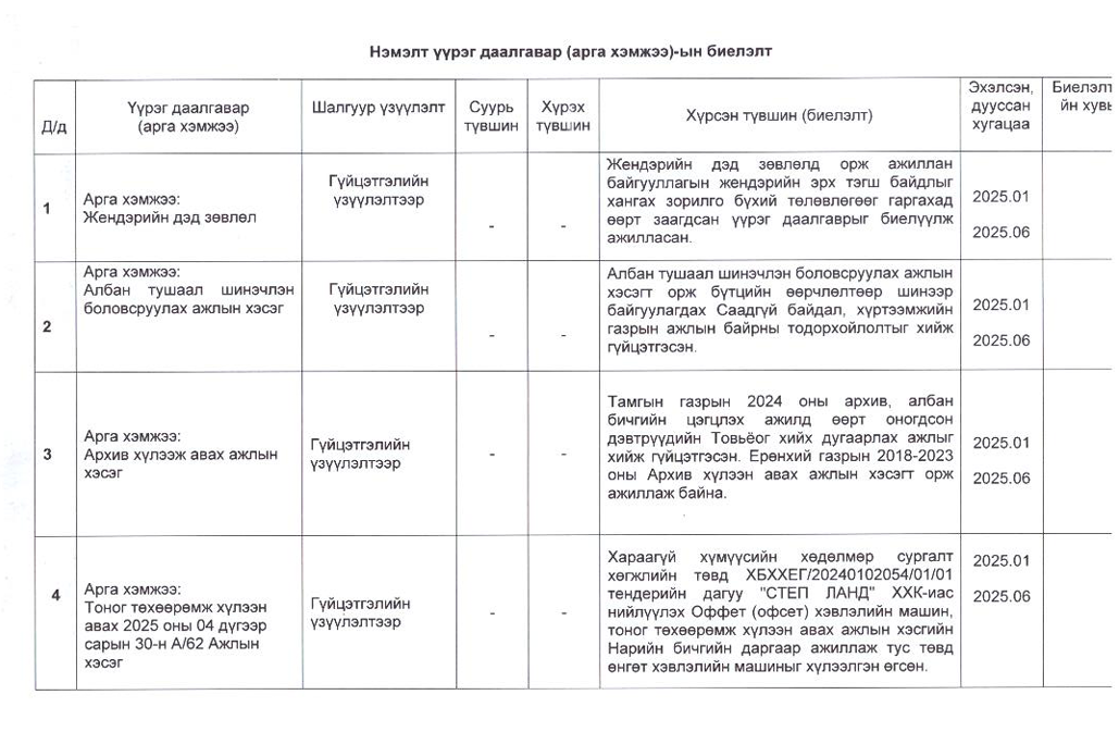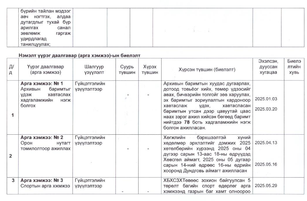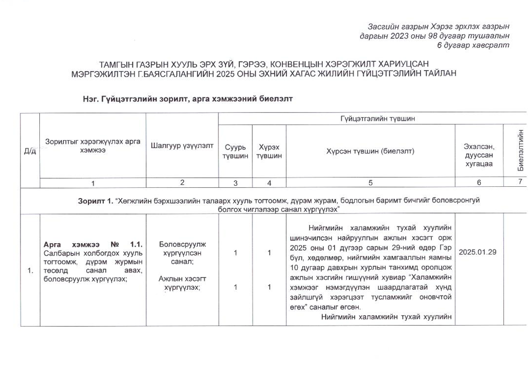 Төрийн жинхэнэ албан хаагчийн ажлын гүйцэтгэлийн тайлан-2025он /Хөгжил, нийгмийн оролцооны газар/