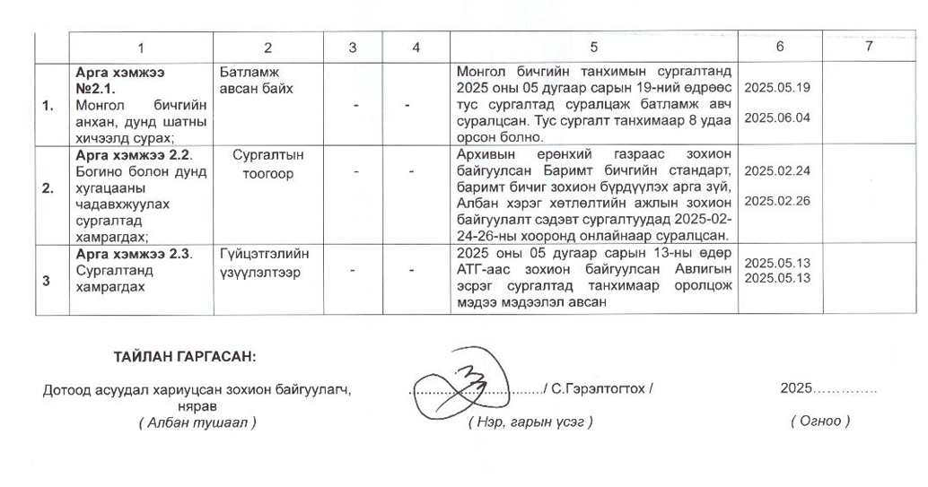 Төрийн жинхэнэ албан хаагчийн ажлын гүйцэтгэлийн тайлан-2025он /Тамгын газар/