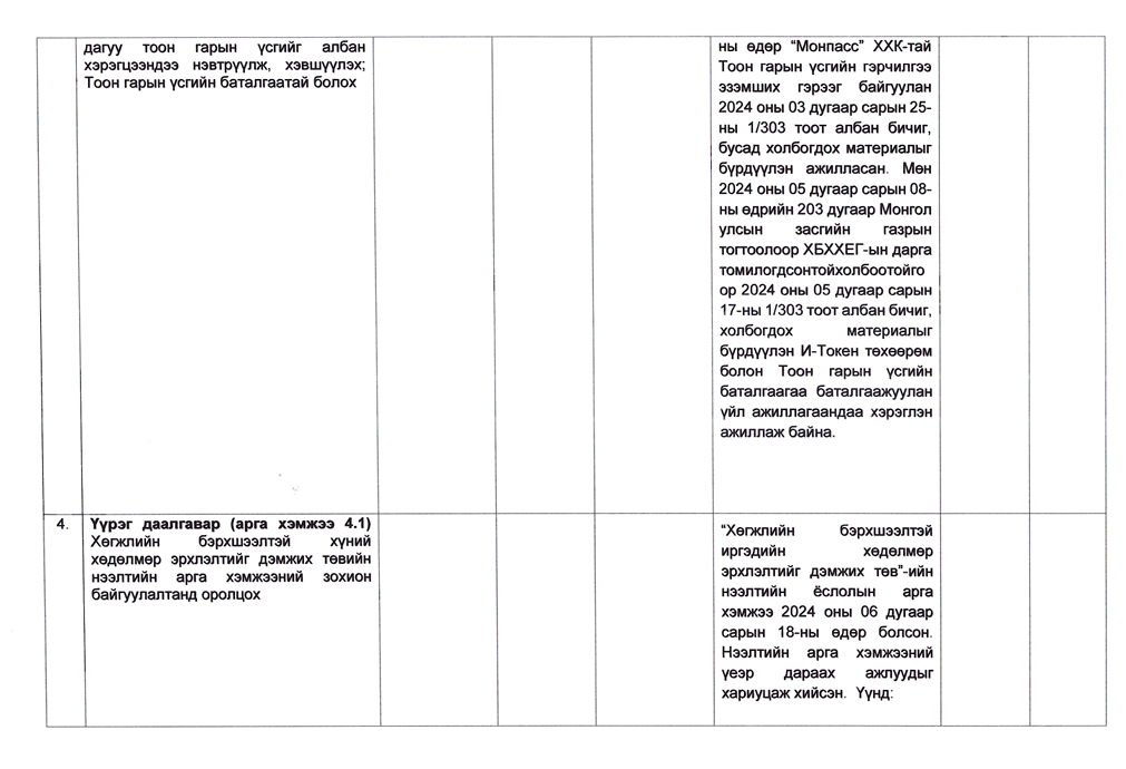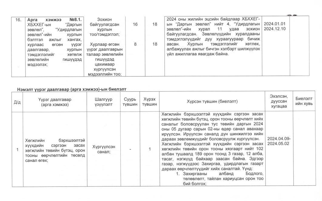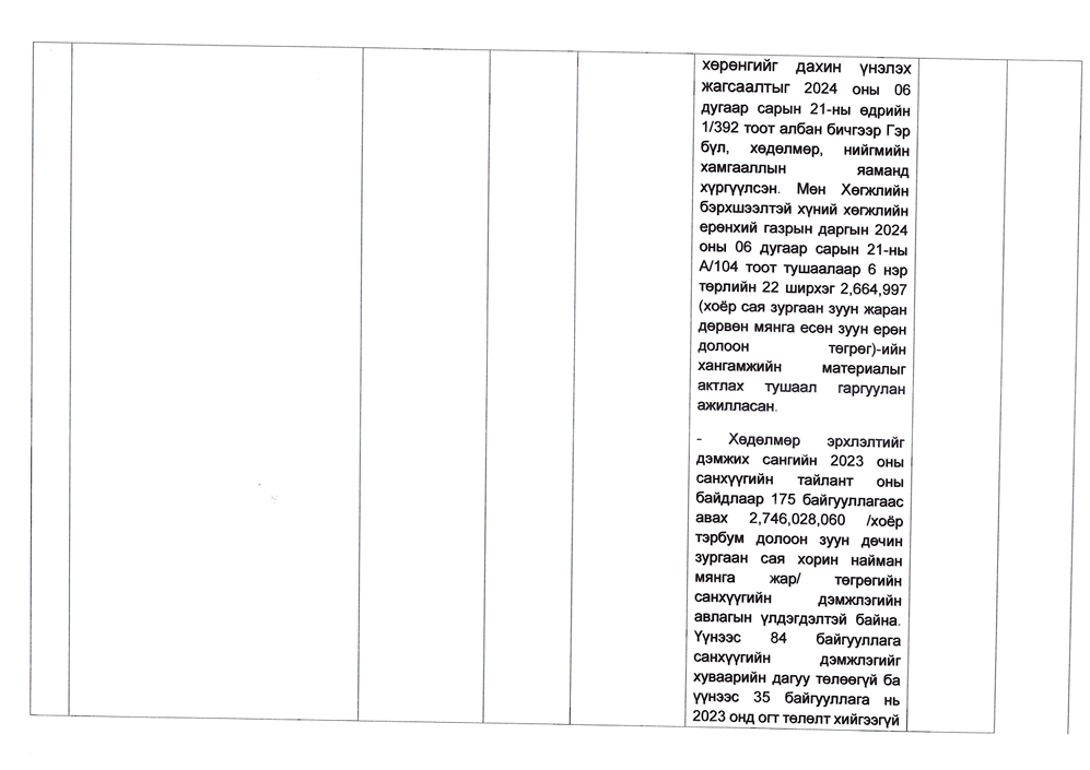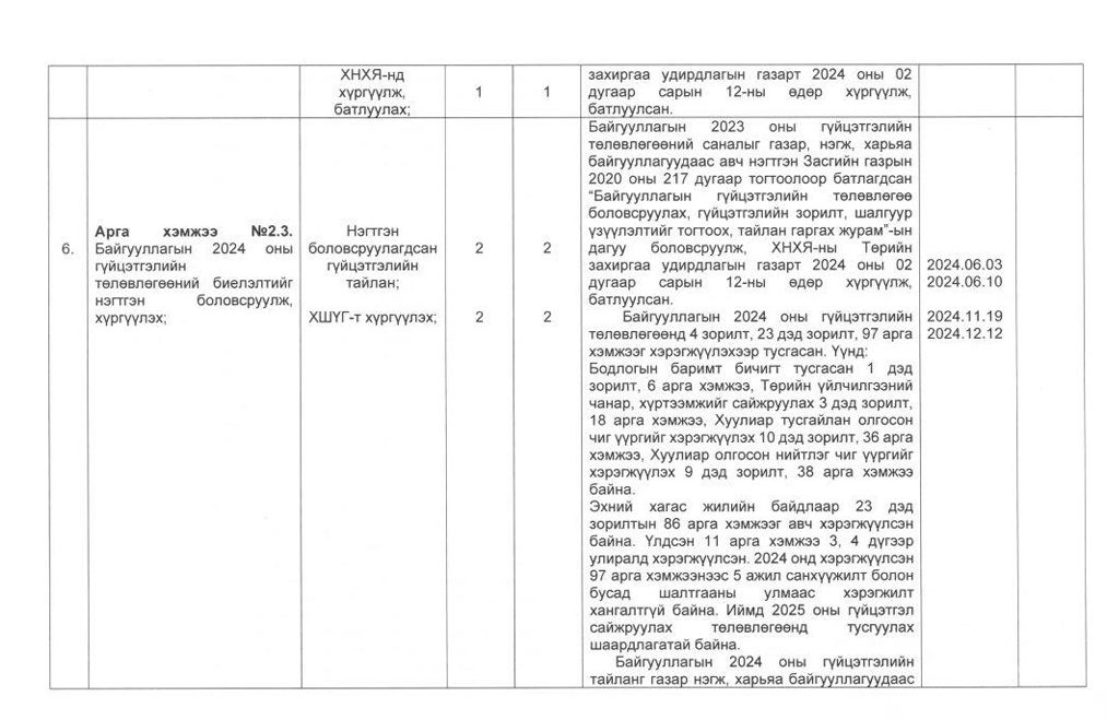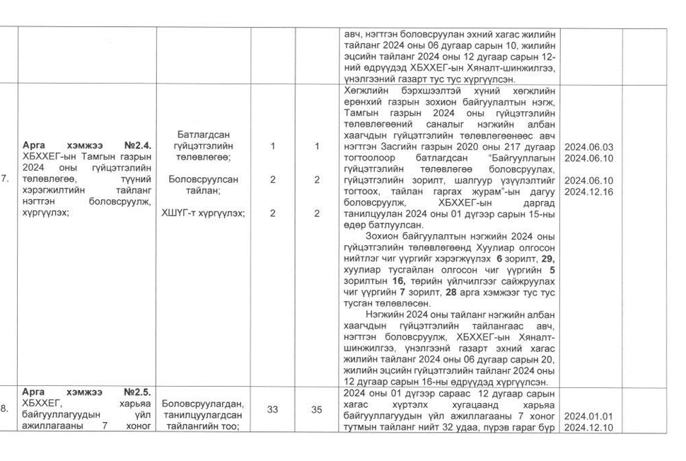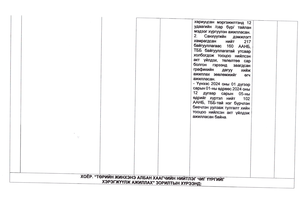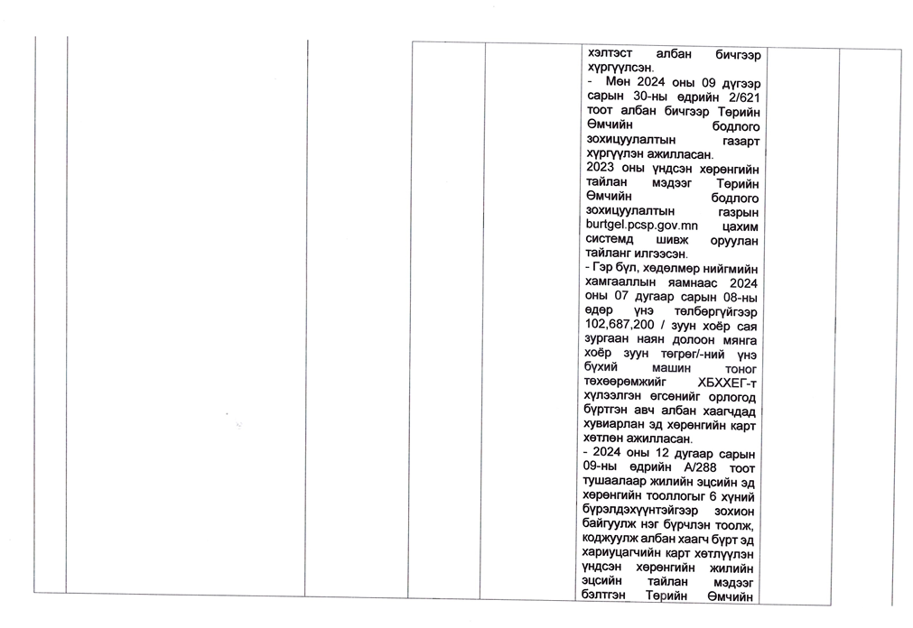 Төрийн жинхэнэ албан хаагчийн ажлын гүйцэтгэлийн тайлан-2024он /Хөгжил, нийгмийн оролцооны газар/