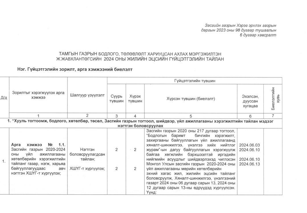 Төрийн жинхэнэ албан хаагчийн ажлын гүйцэтгэлийн тайлан-2024он /Тамгын газар/